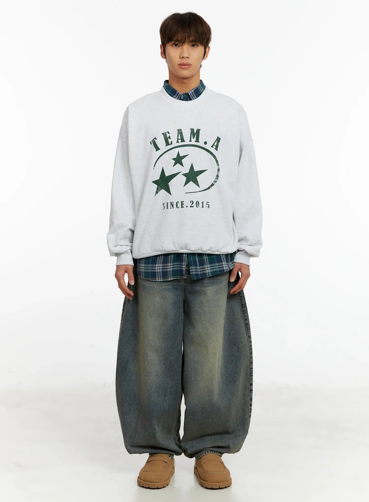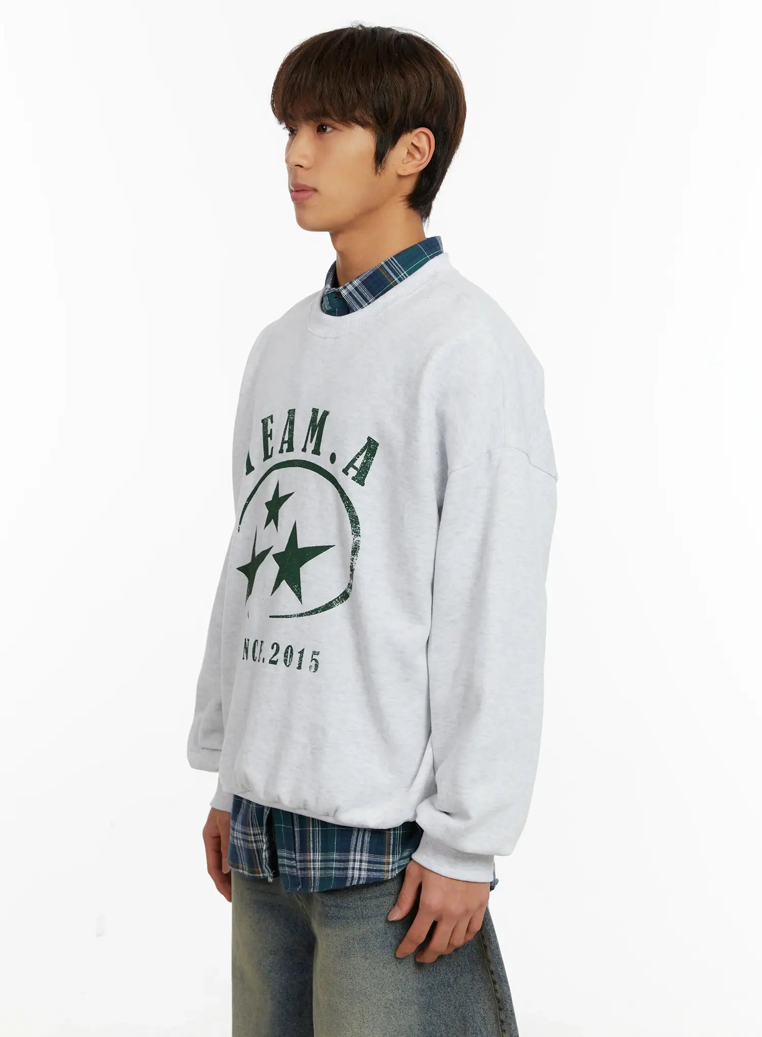 Men's Star Print Crewneck Fleece Sweatshirt ID524