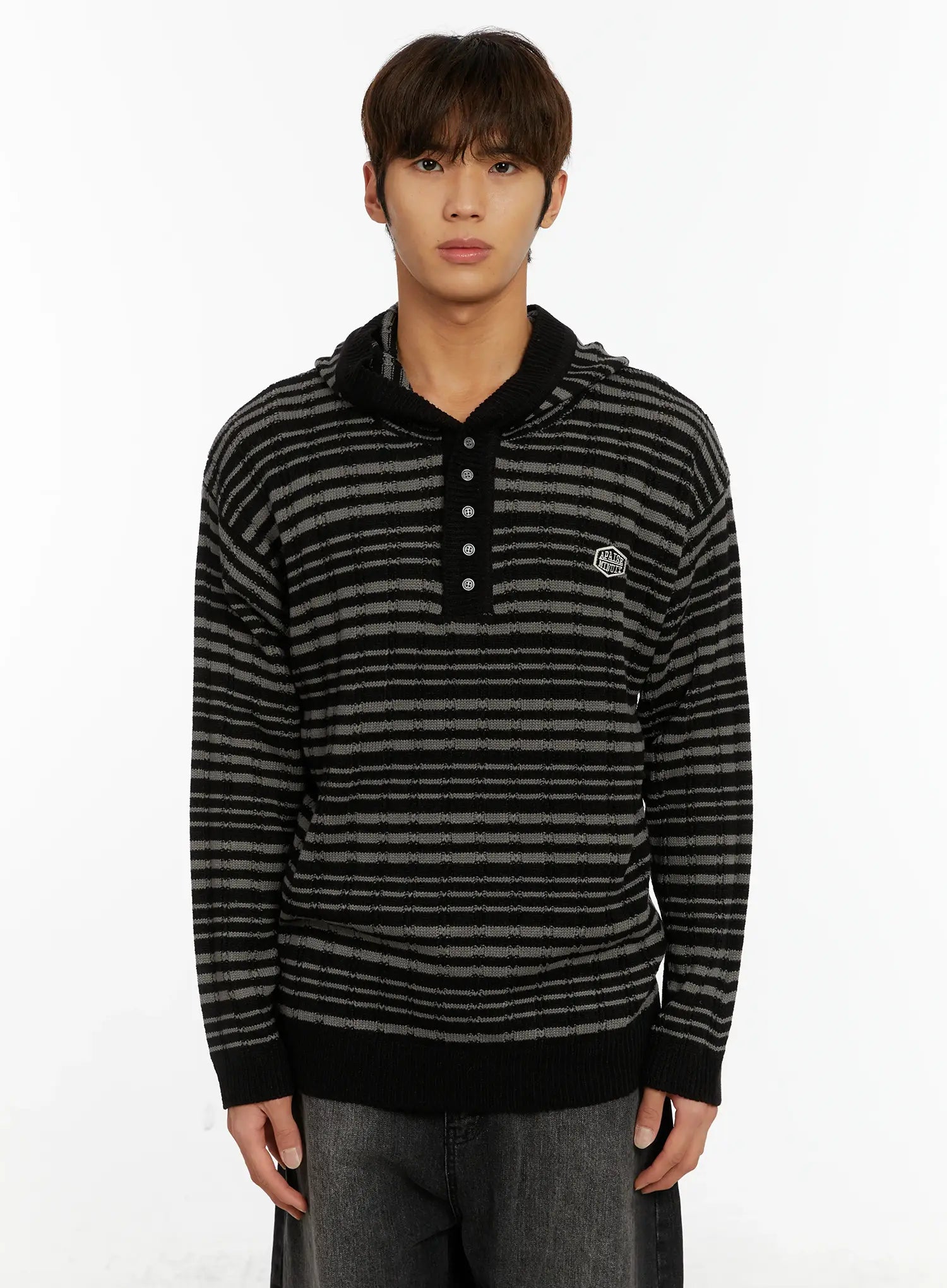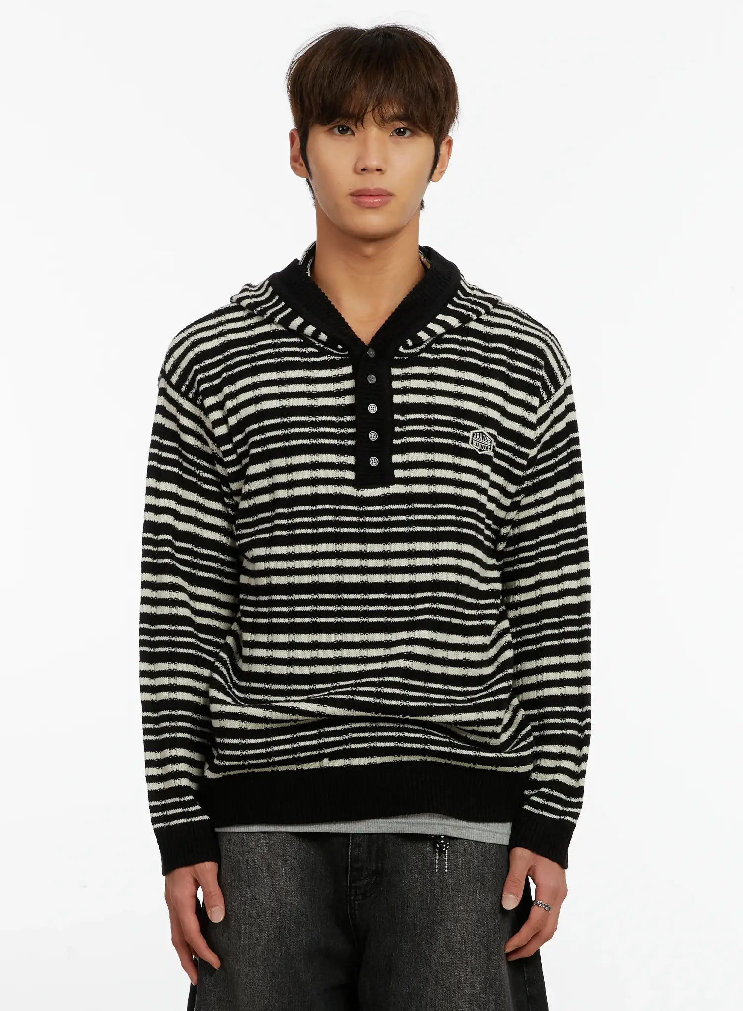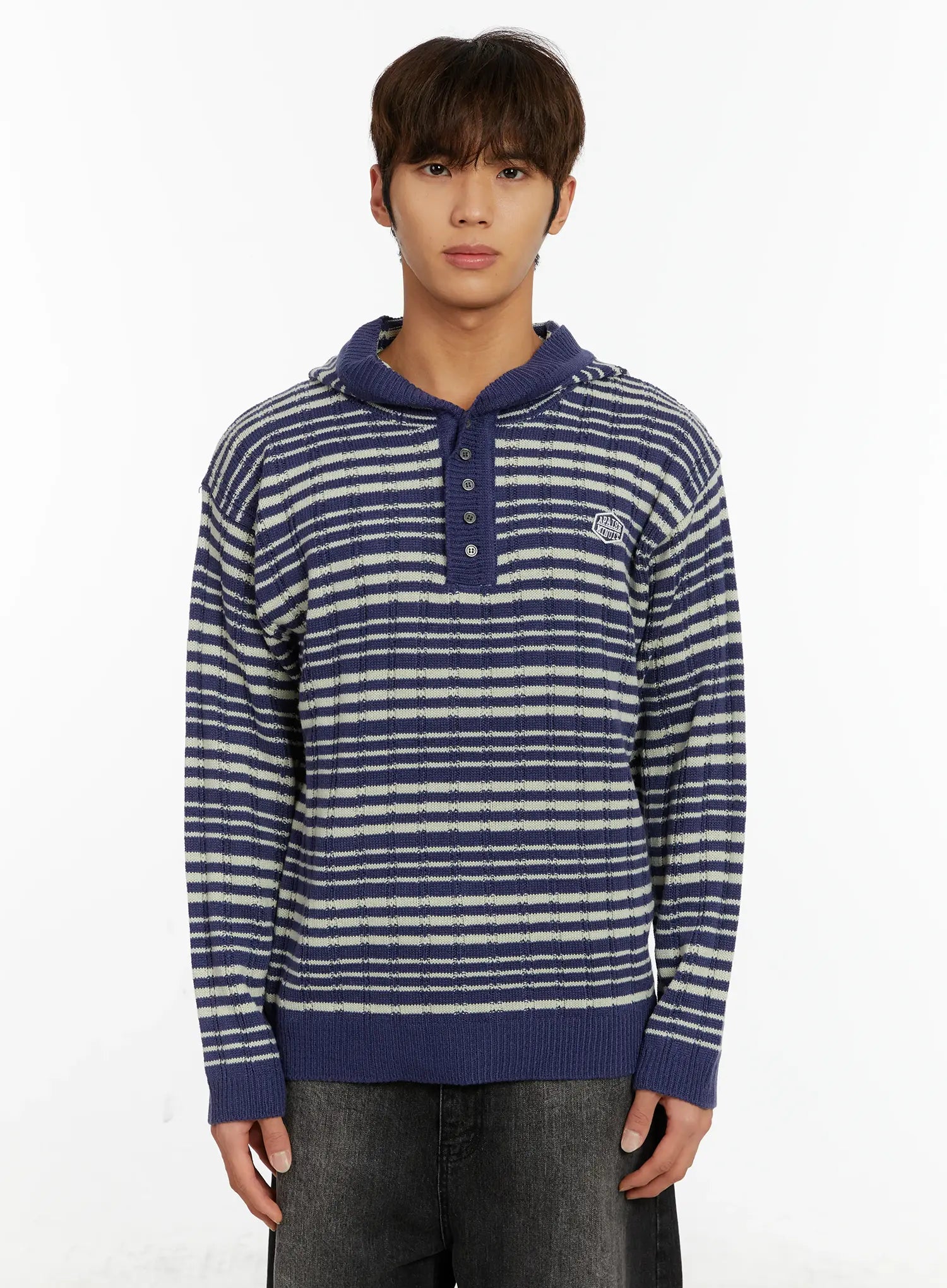 Men's Striped Henley Knit Hoodie ID524