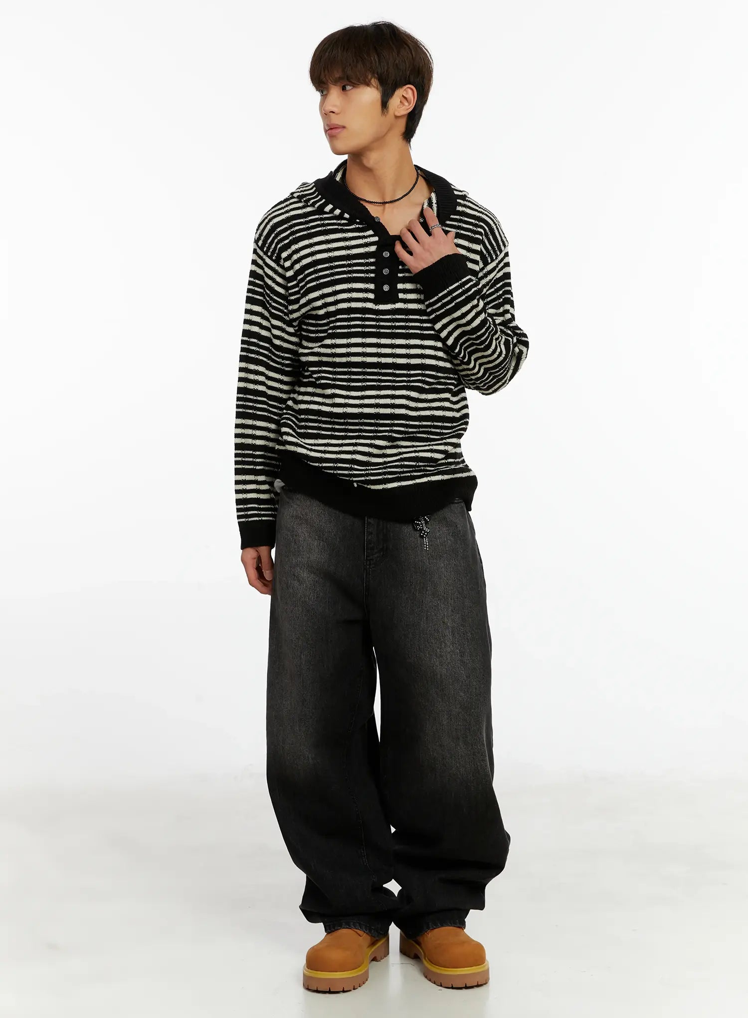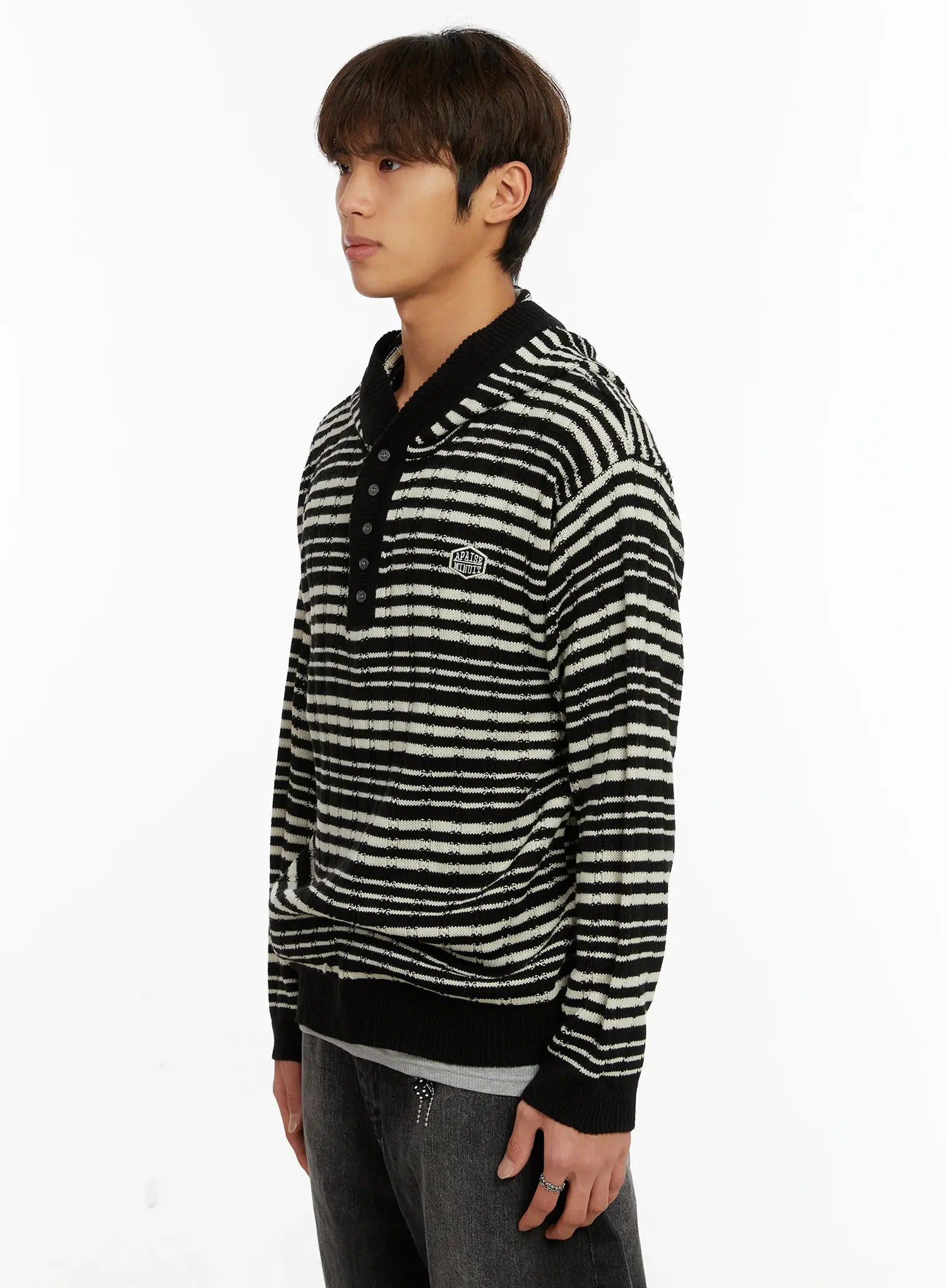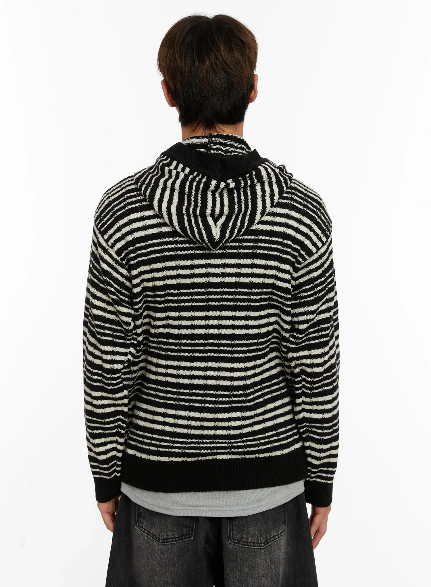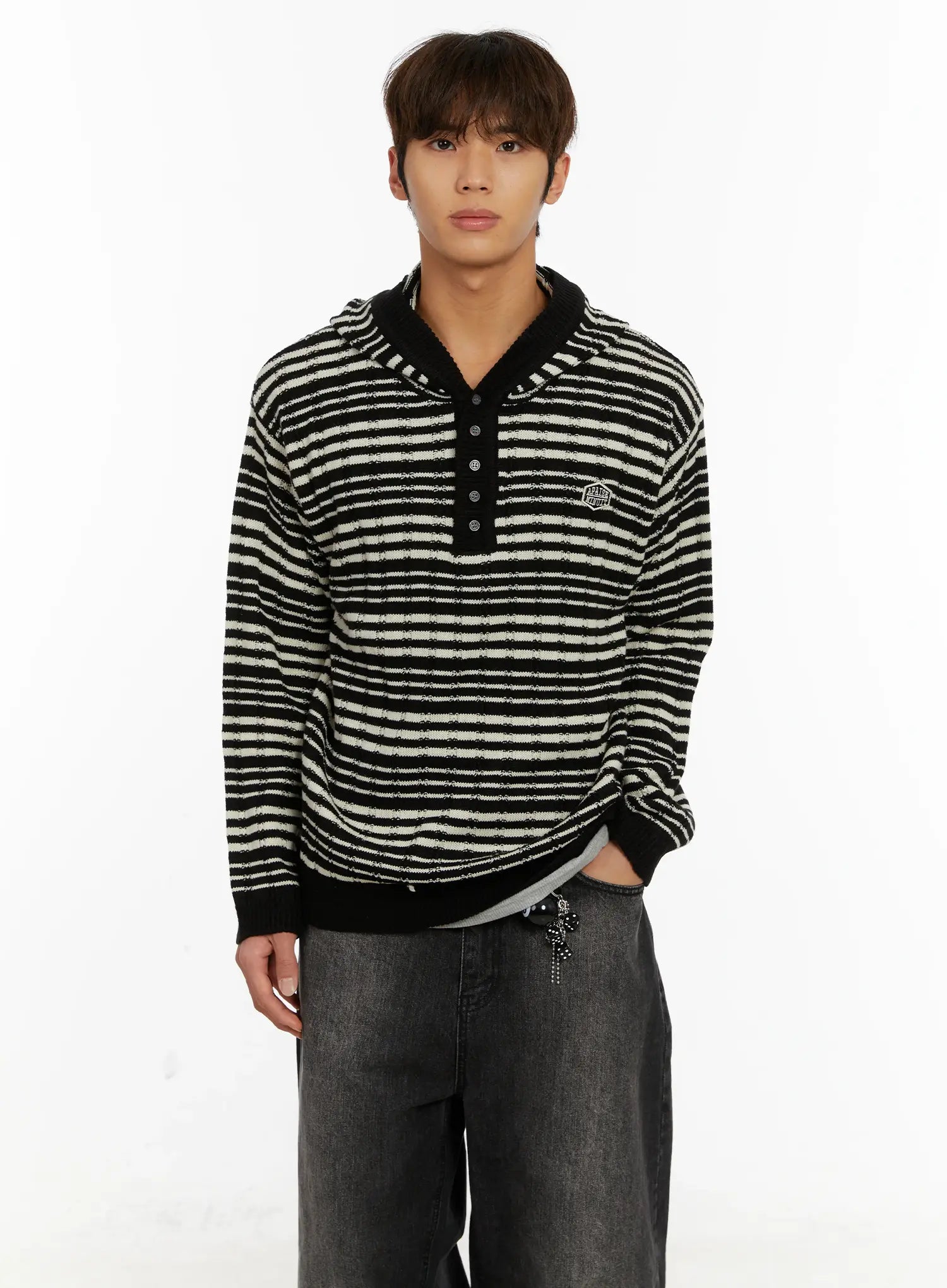 Men's Striped Henley Knit Hoodie ID524