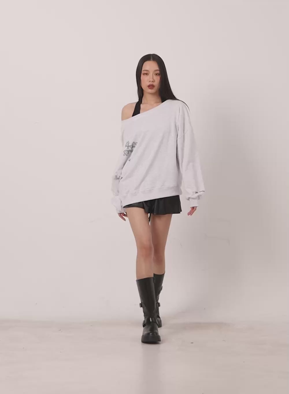 Off-Shoulder Cross Graphic Sweatshirt IA507
