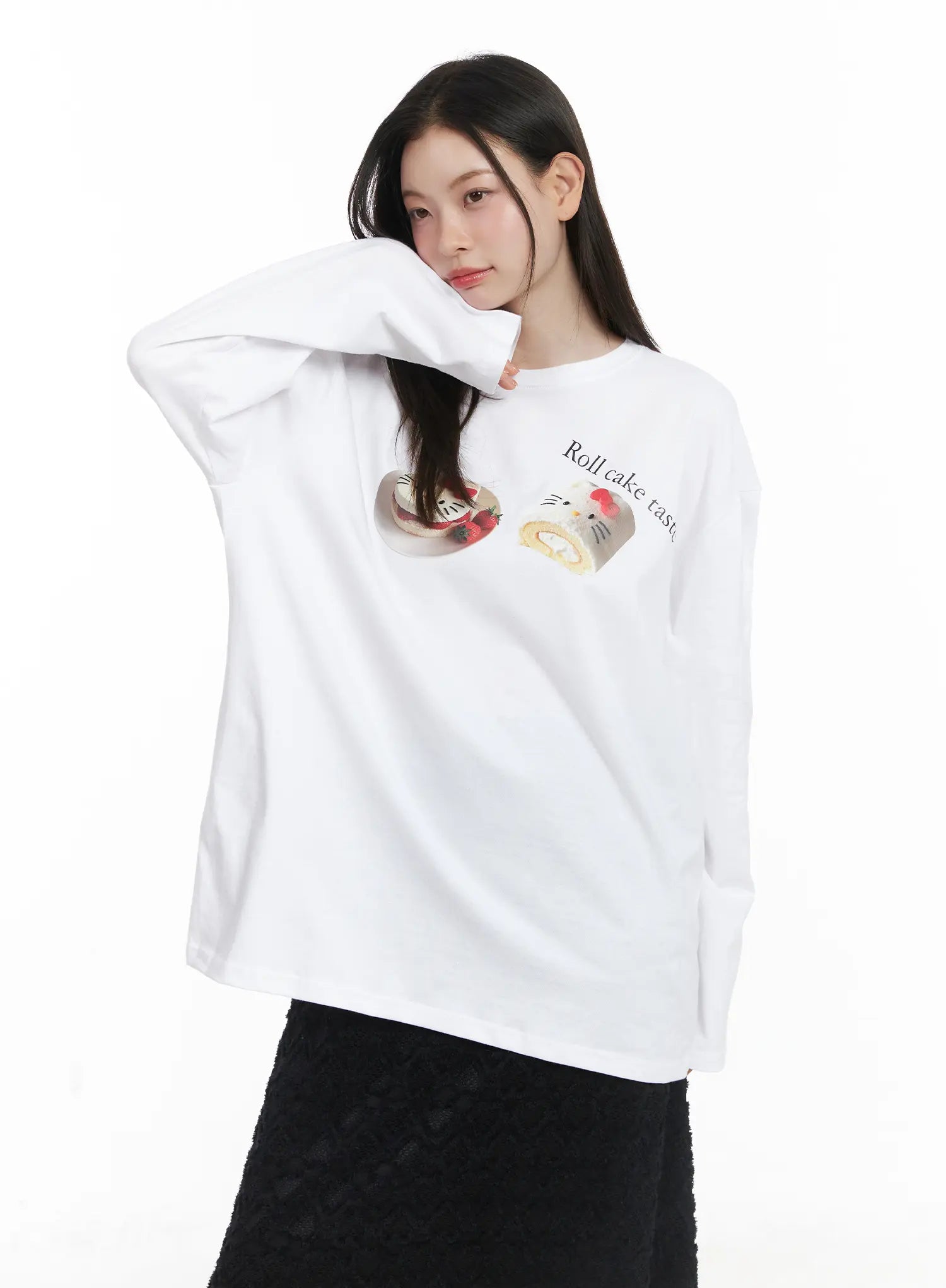 Oversized Graphic Print Long Sleeve Top CJ507