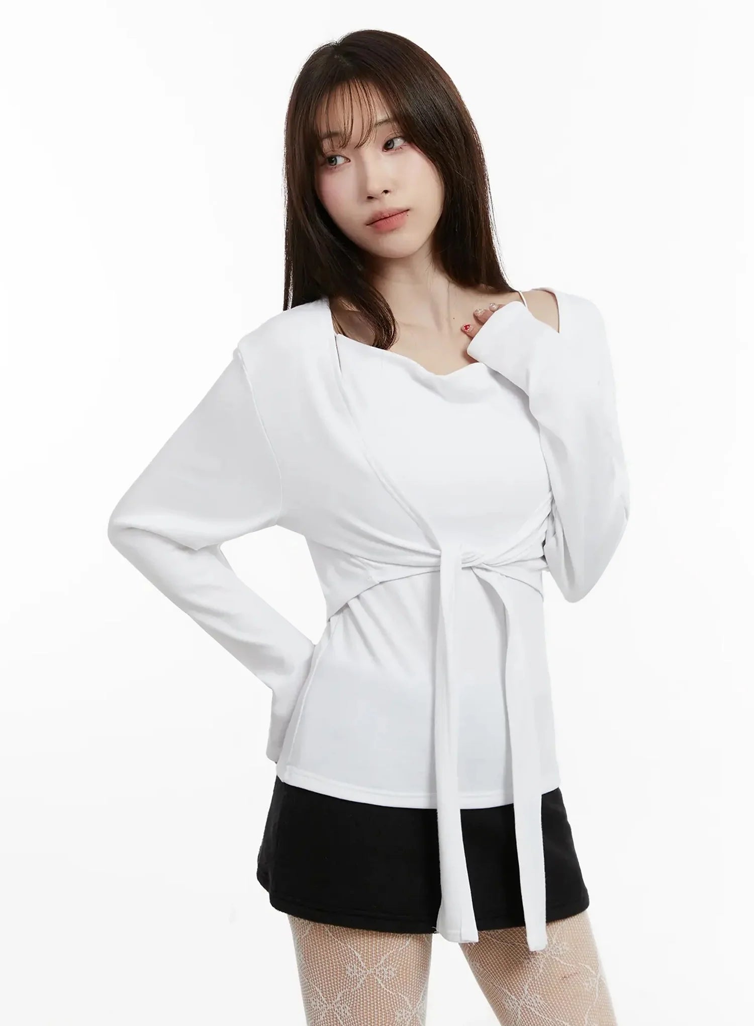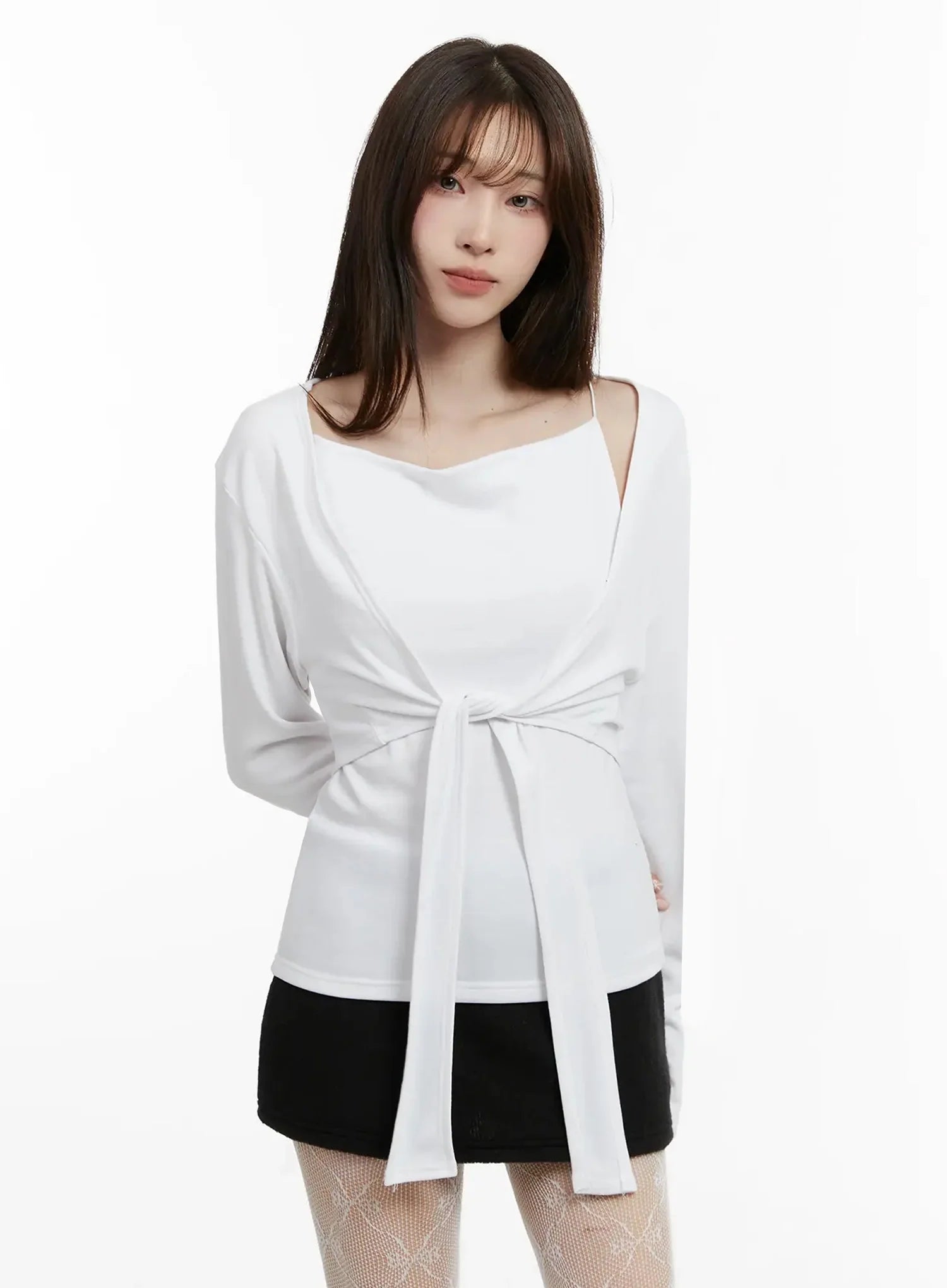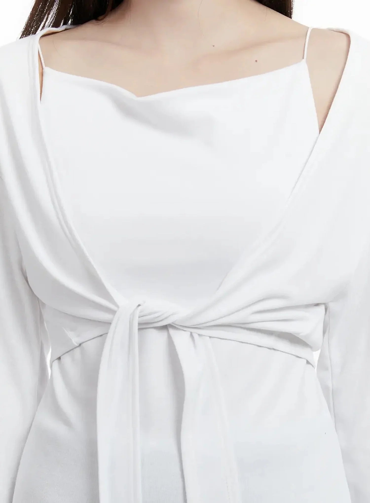 Tie Layered Knit Cami Cardigan Set IJ516