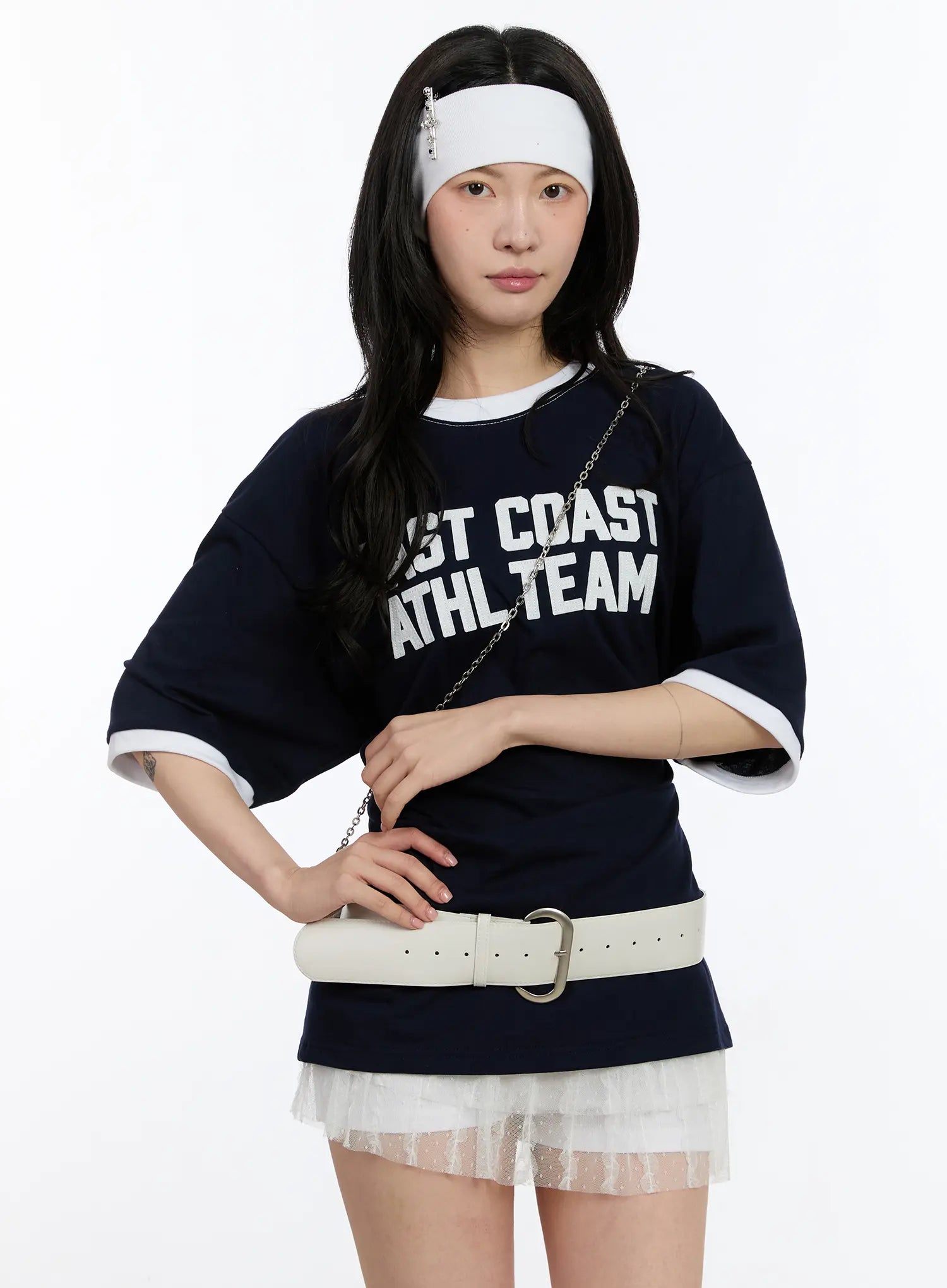 Oversized Graphic Ringer Tee CA507