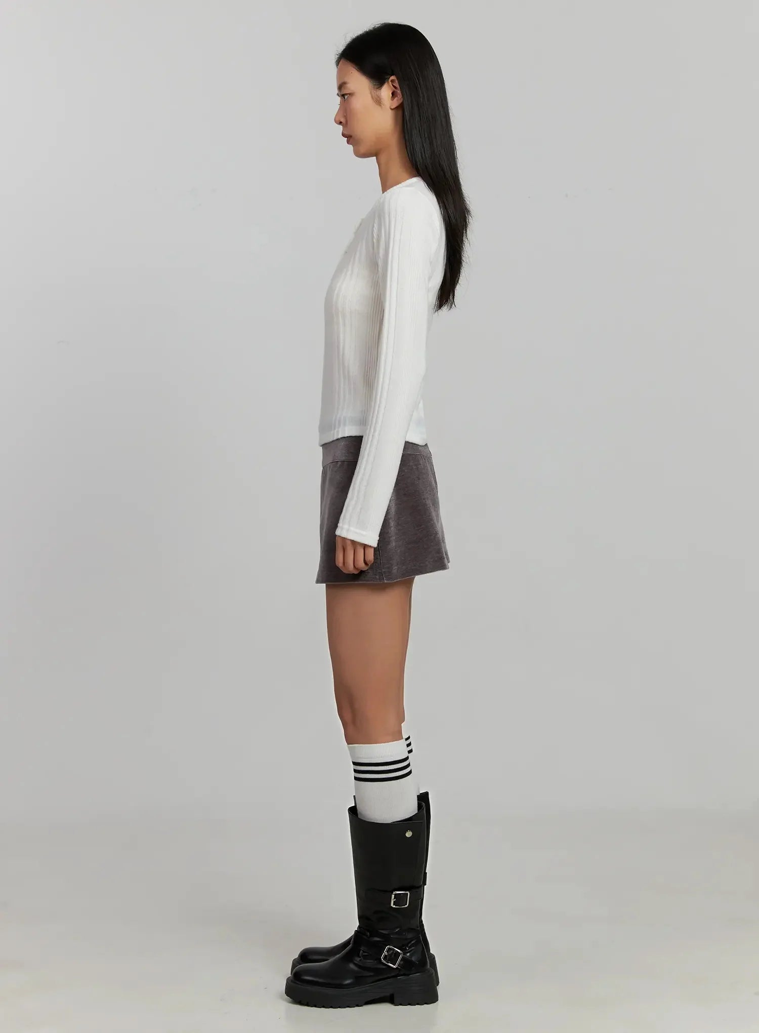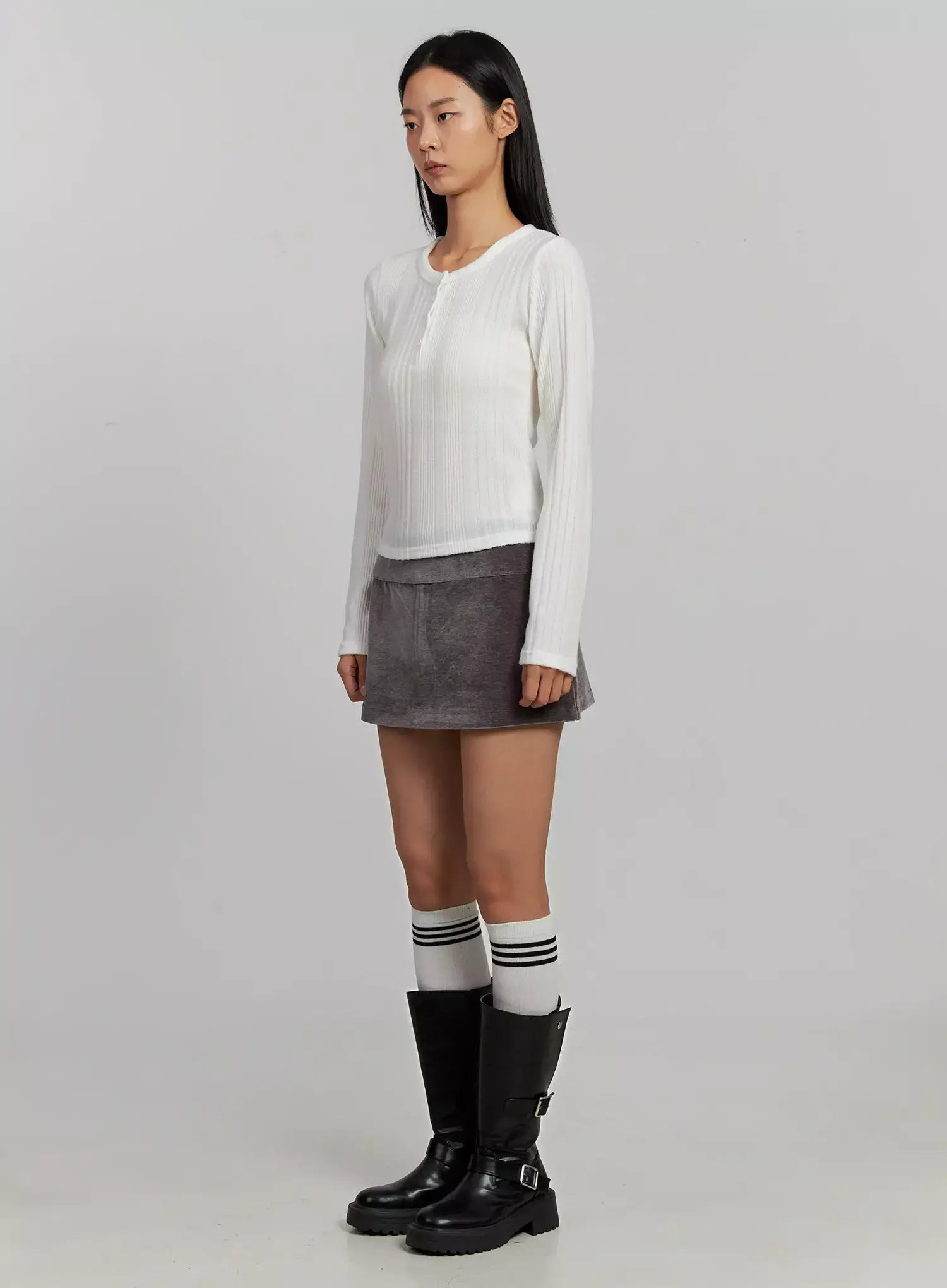 Ribbed Henley Long Sleeve Top IJ502
