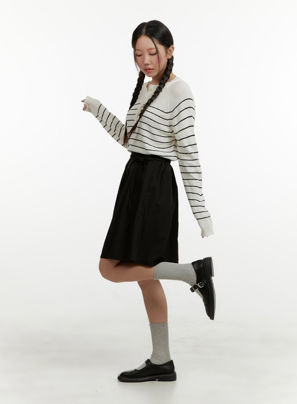 Ribbon Strap Pleated Midi Skirt OY413