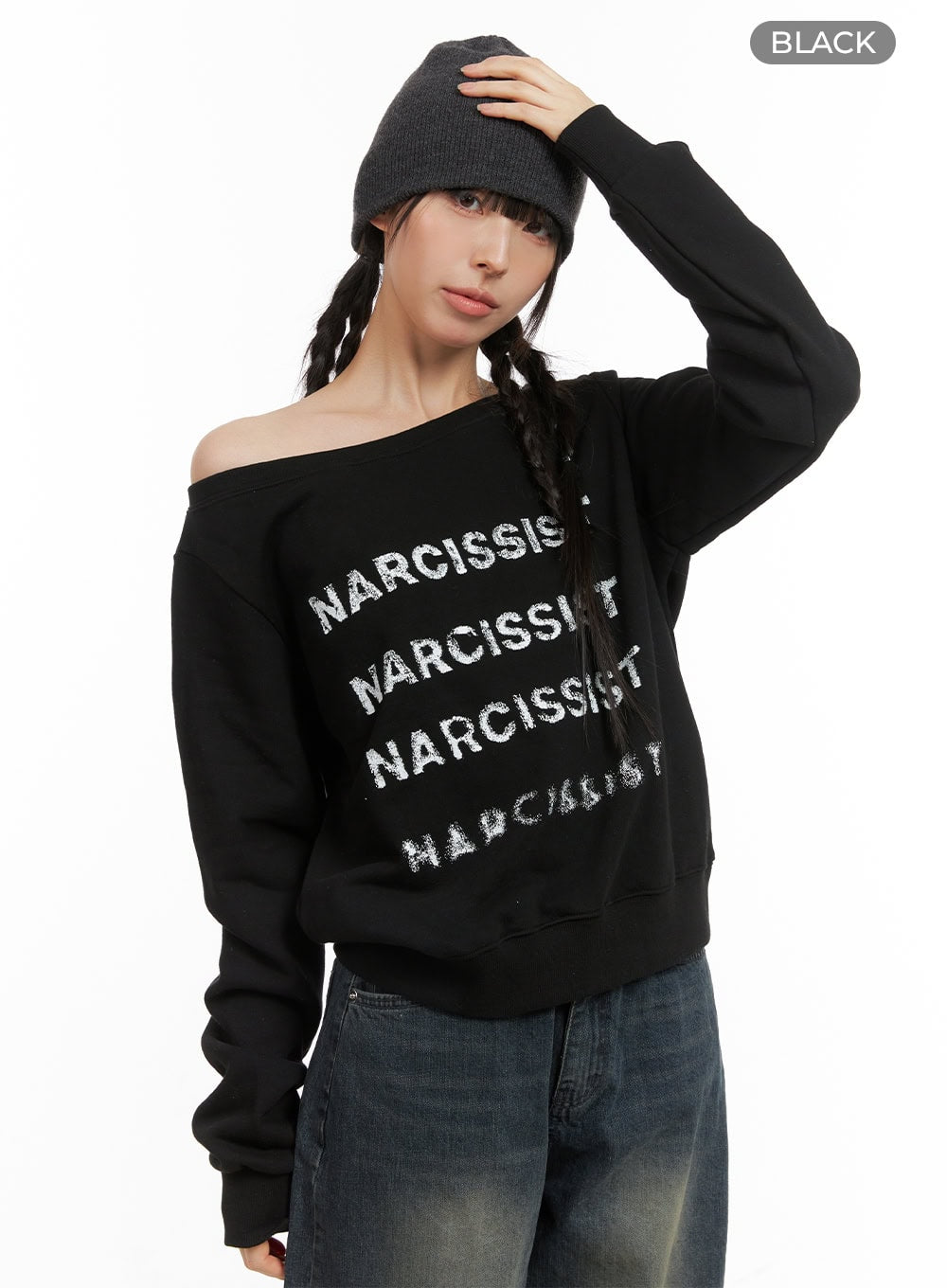 Cozy Lettering Off Shoulder Sweatshirt CG419