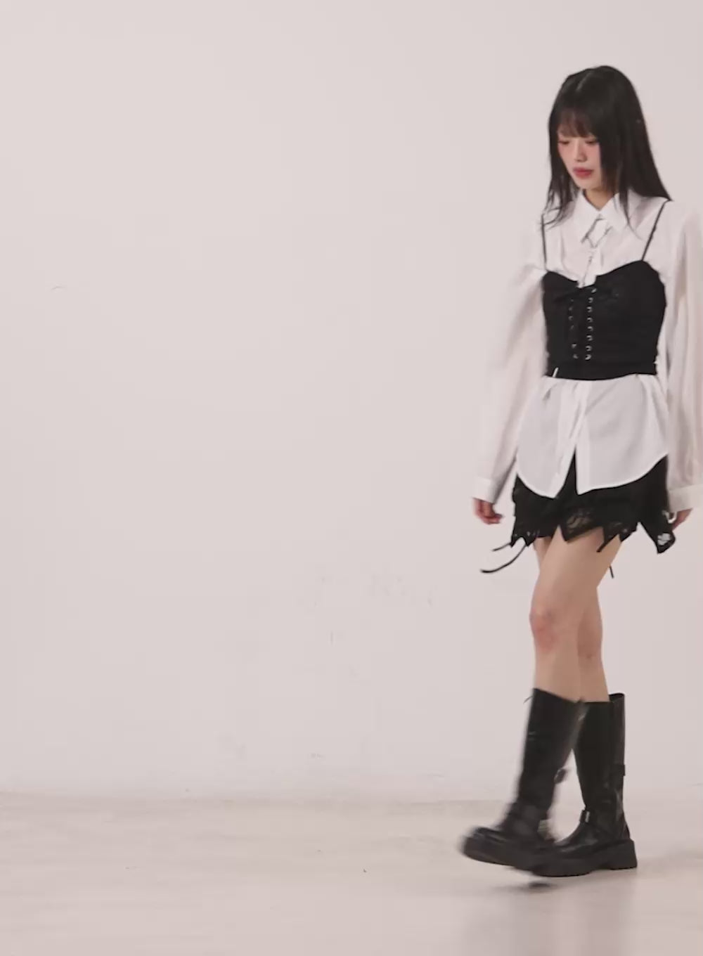 asymmetric-lace-ruffle-mini-skirt-cm519 / Black