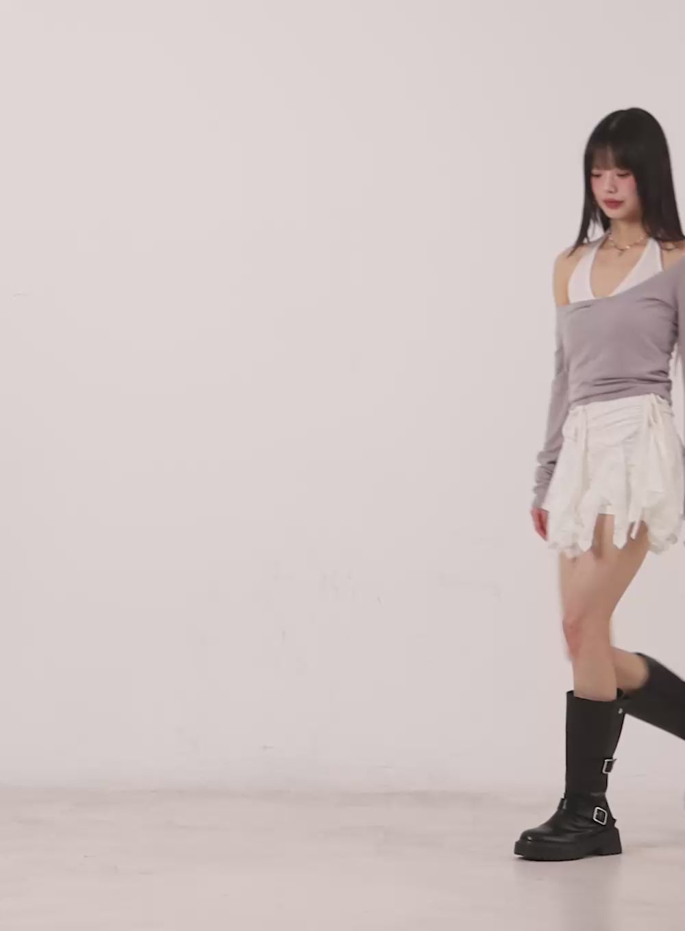 ribbon-wrap-flare-mini-skirt-cf525 / Light gray