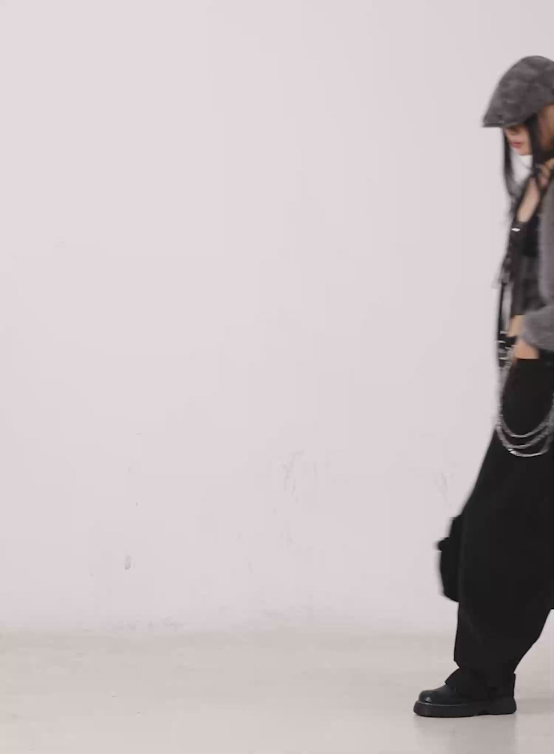 The puffer jacket, styled with ski goggles and chunky sneakers, effortlessly balances functionality and edge. Its clean lines and monochromatic palette create a Y3K look that’s perfect for winter activities or insta-worthy photos. This ensemble encapsulates the collection’s focus on merging comfort with cutting-edge picks.