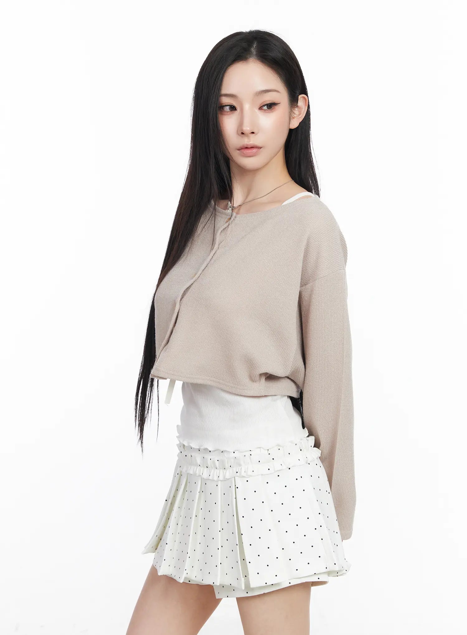 Model is wearing size S/M and the color Beige.