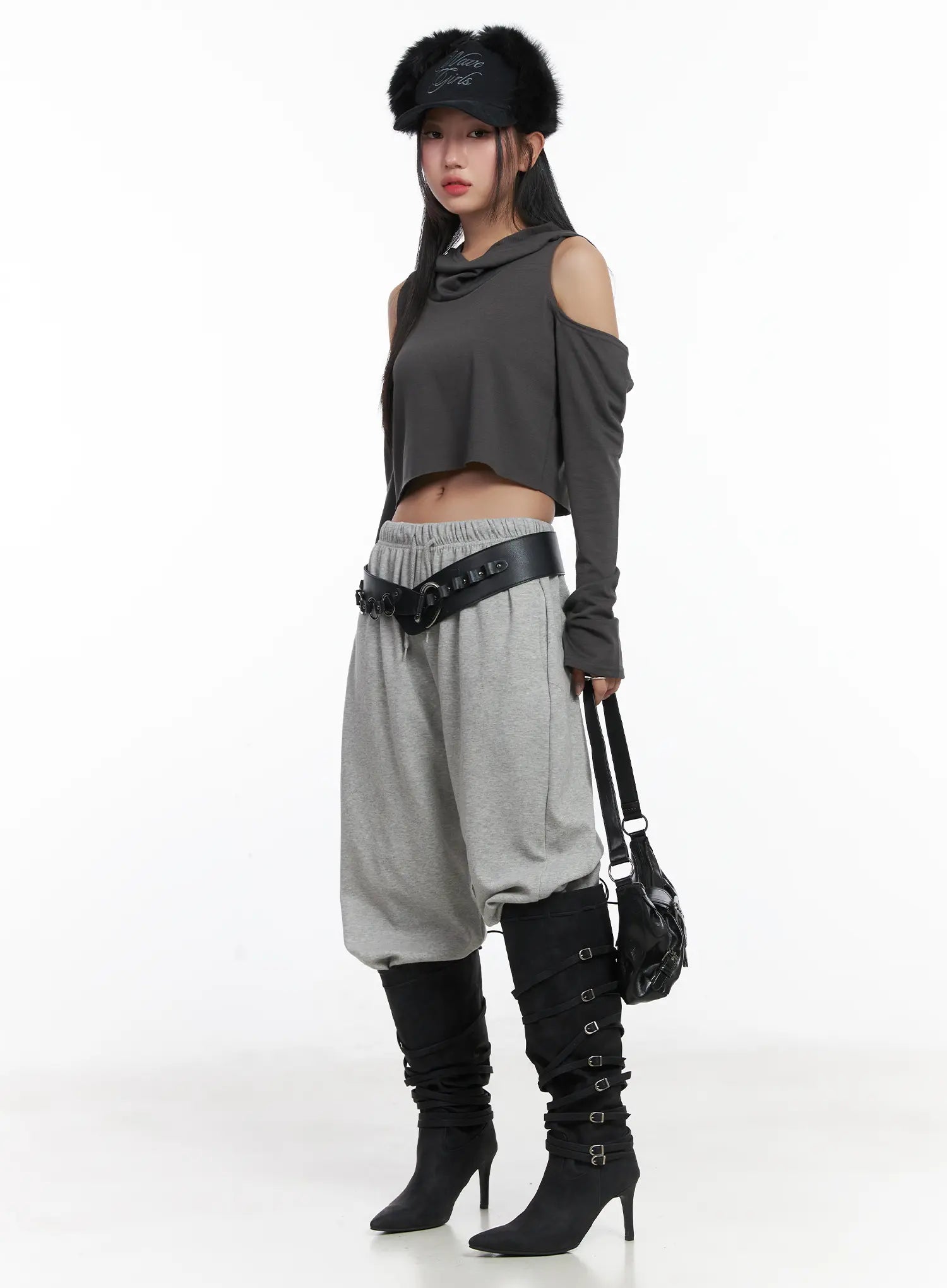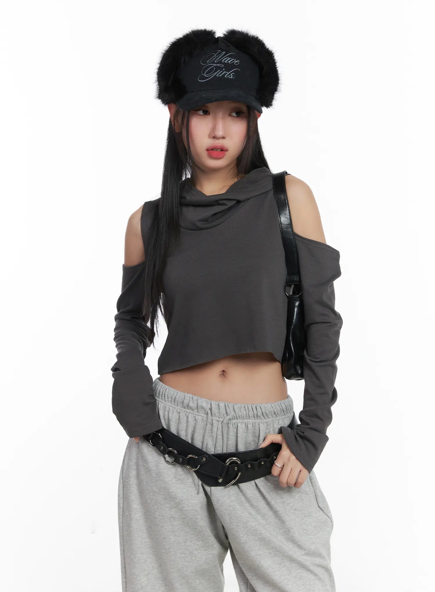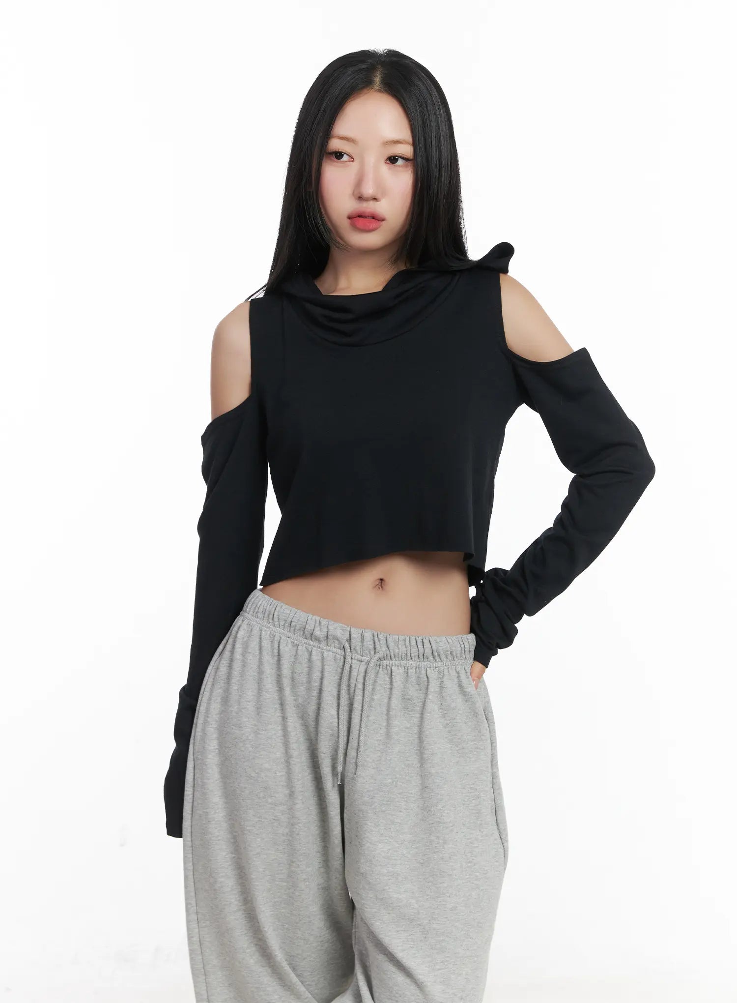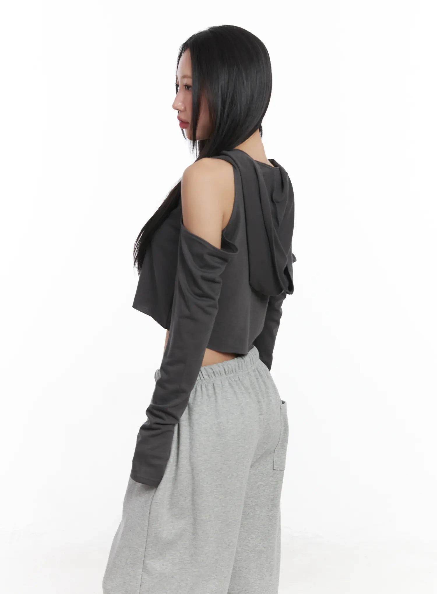 Cut-Out Crop Hood Long Sleeve Top CD529