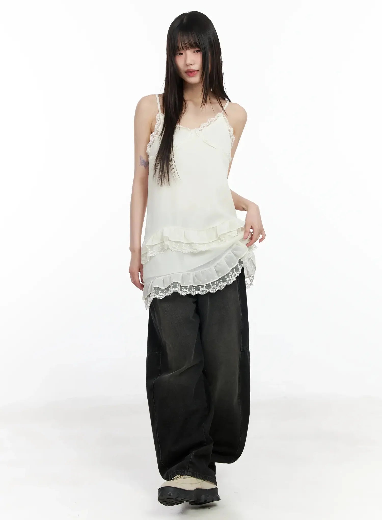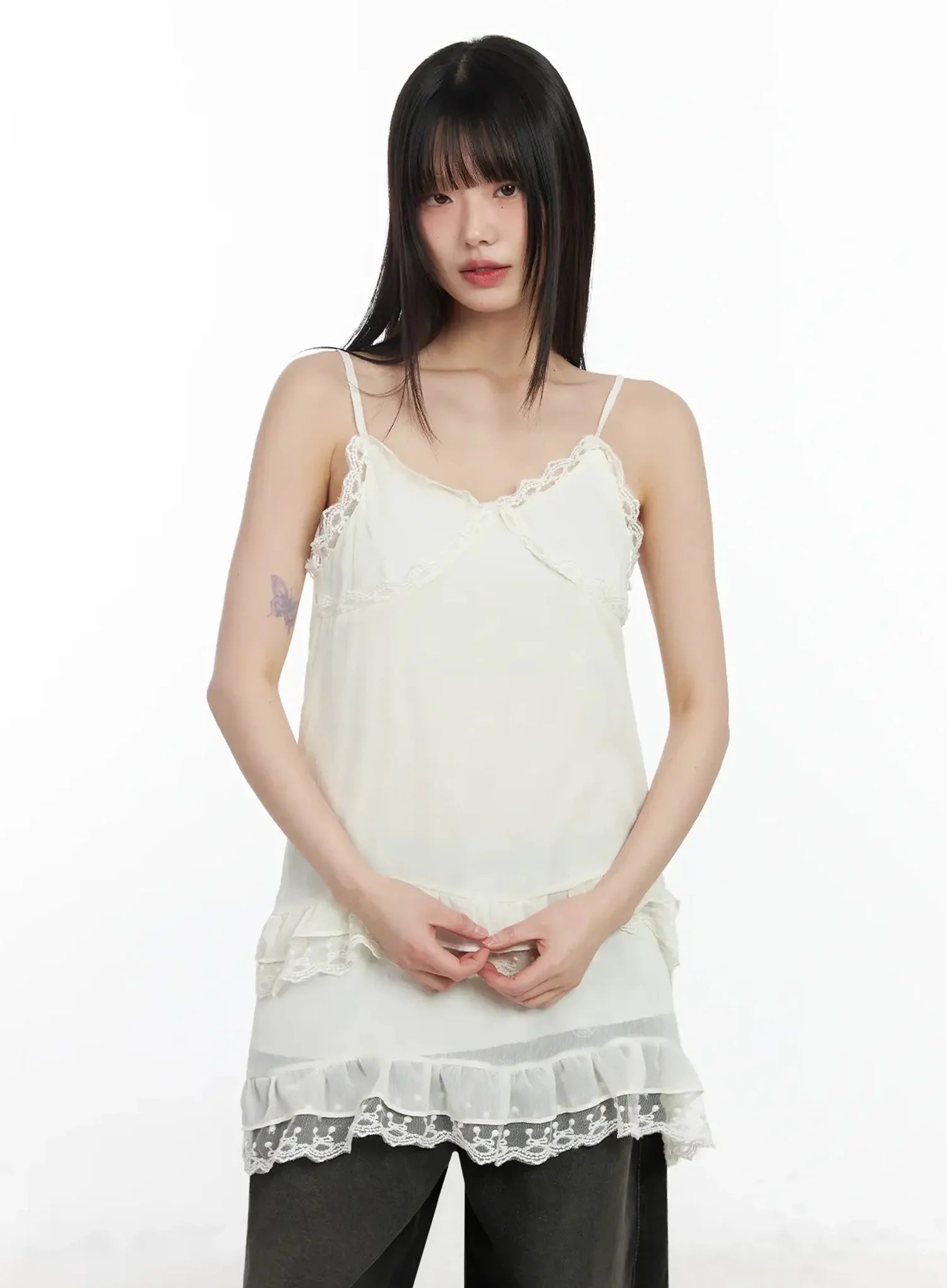 Lace Frill Long Tank Top IM530