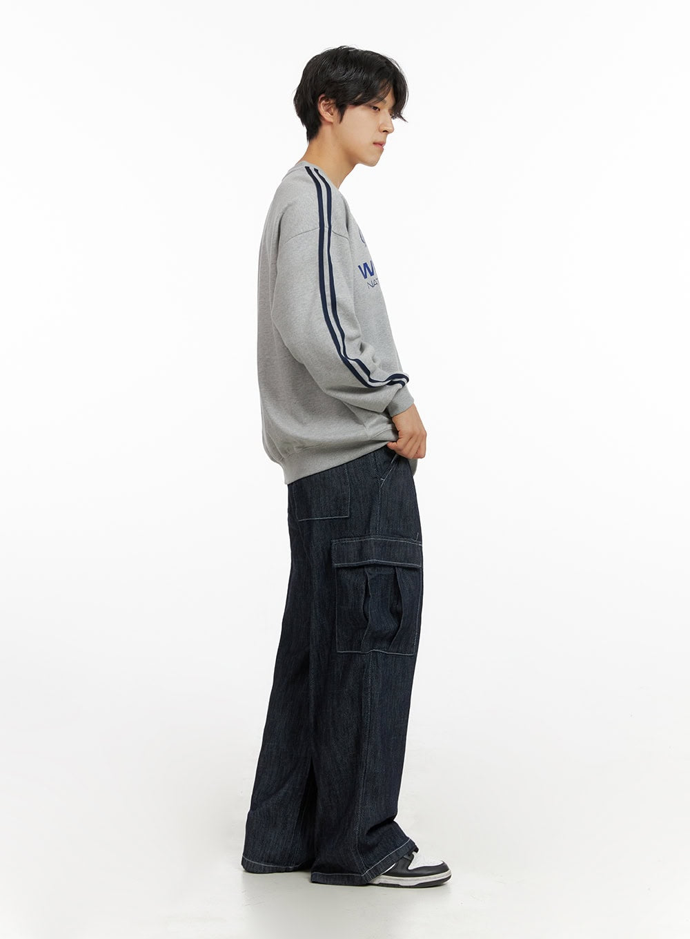 Men's Graphic V-Neck Sweatshirt (Gray) IG409