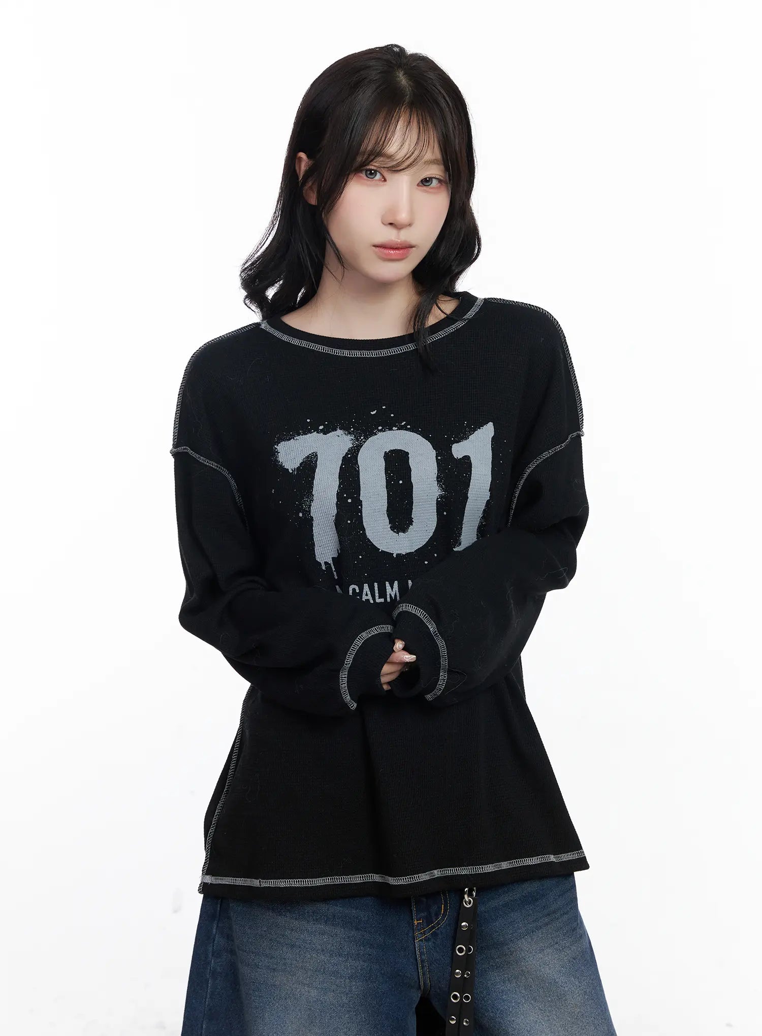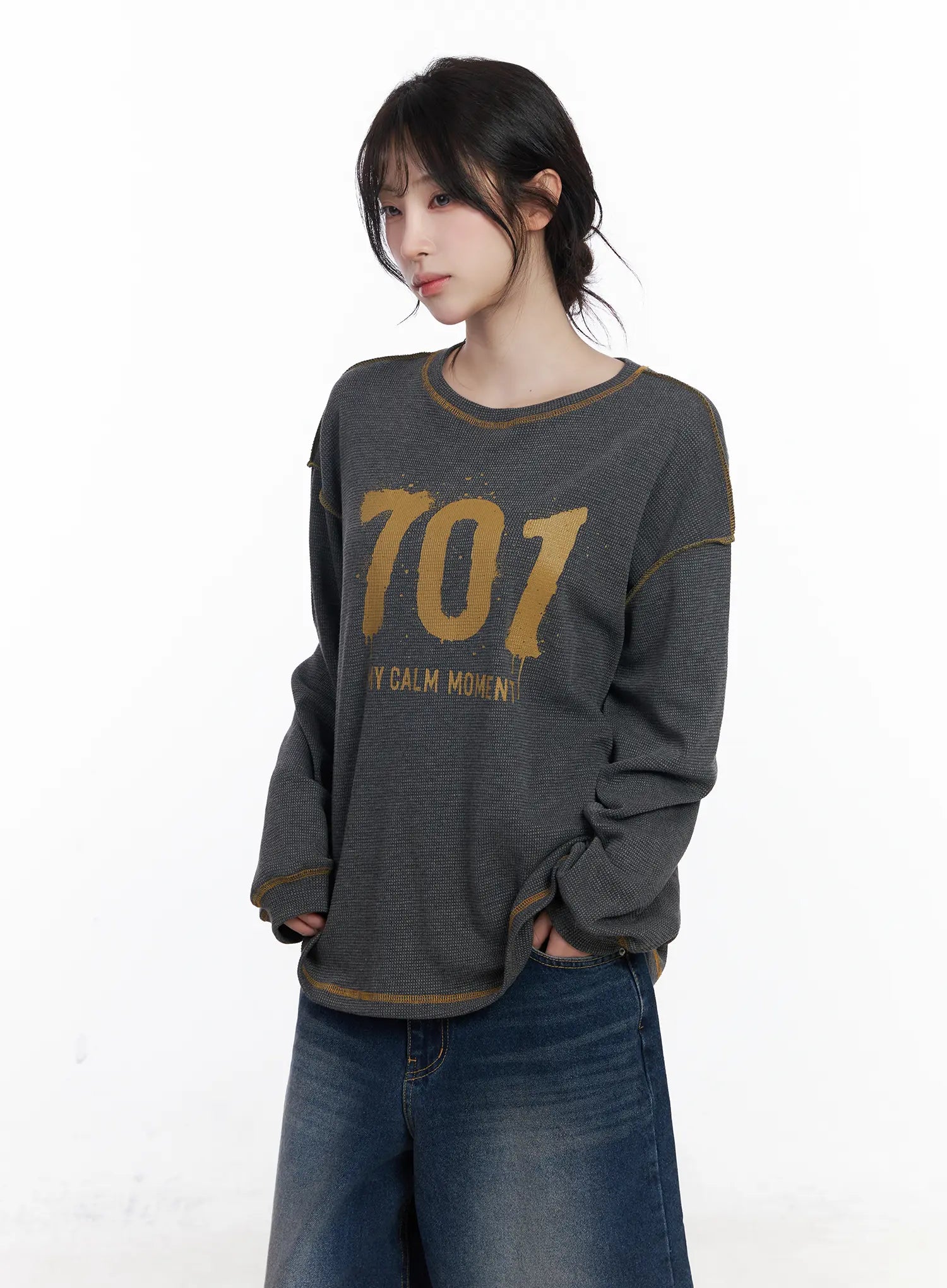 Graphic Oversized Textured Long Sleeve Top CJ527