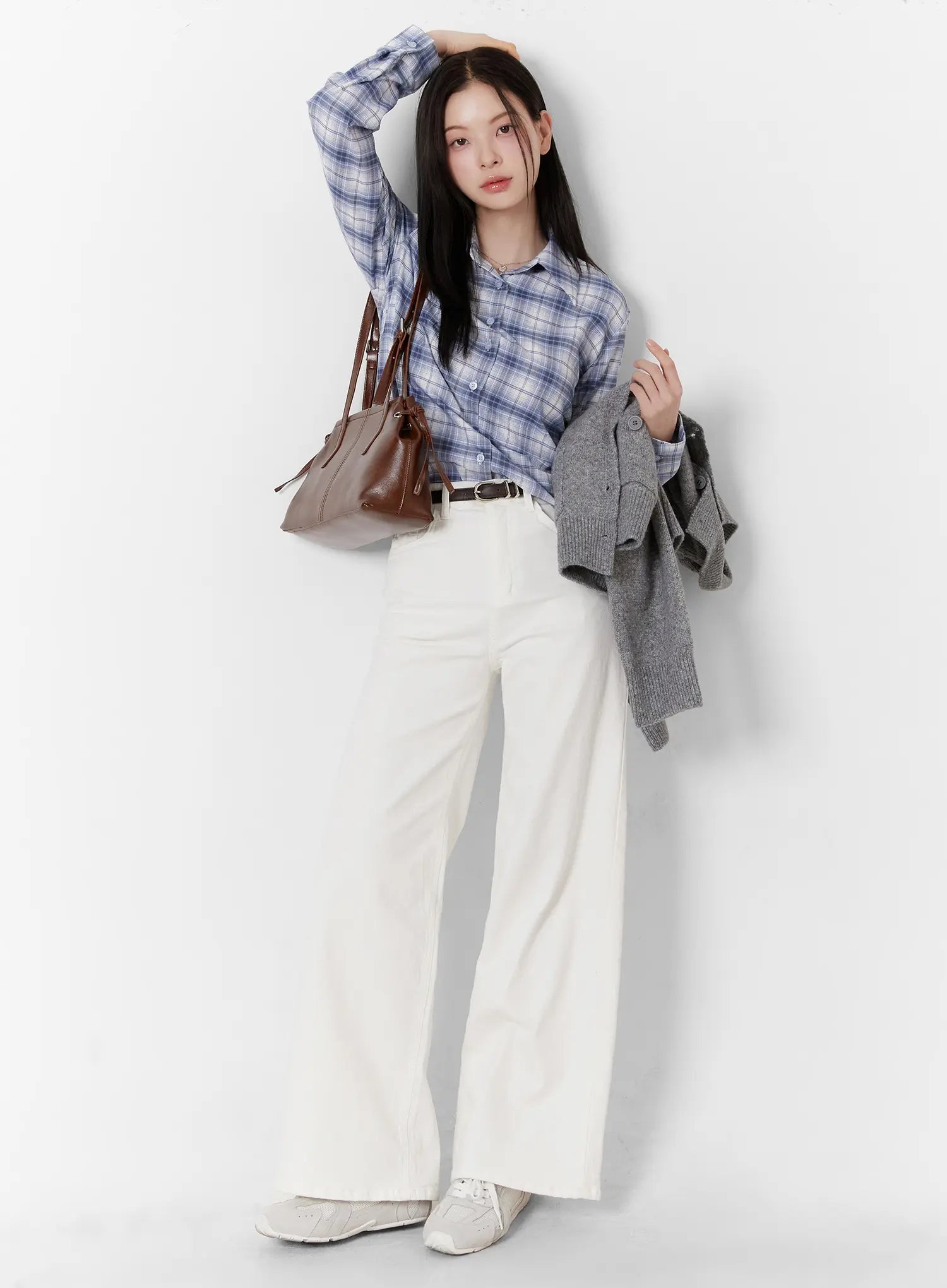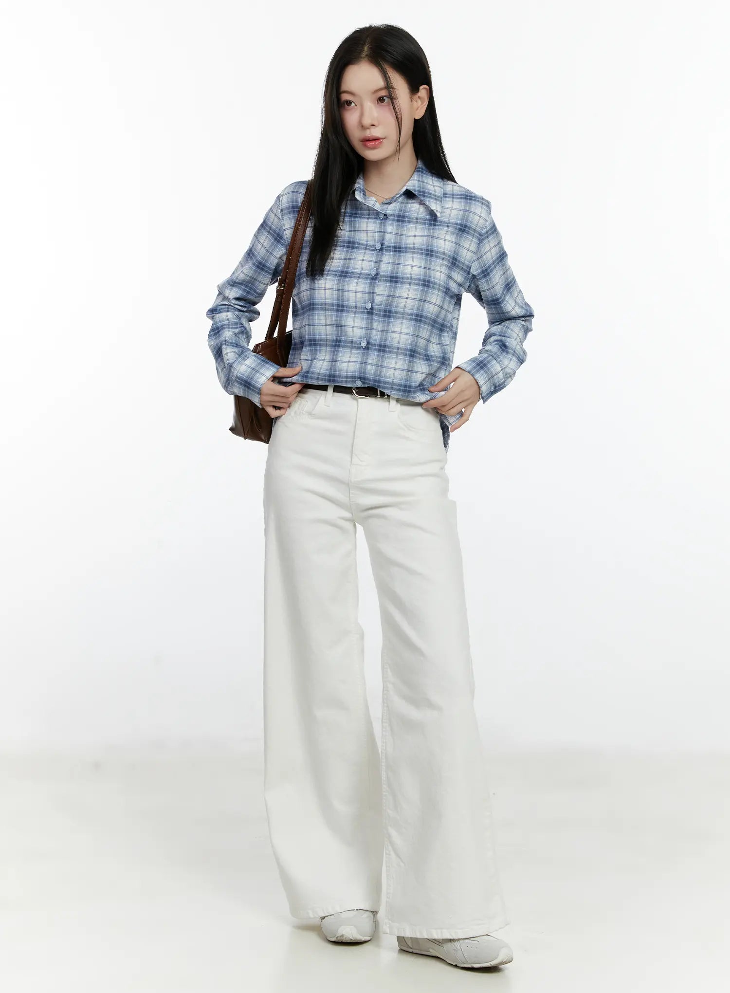 Plaid Crop Long Sleeve Shirt F502