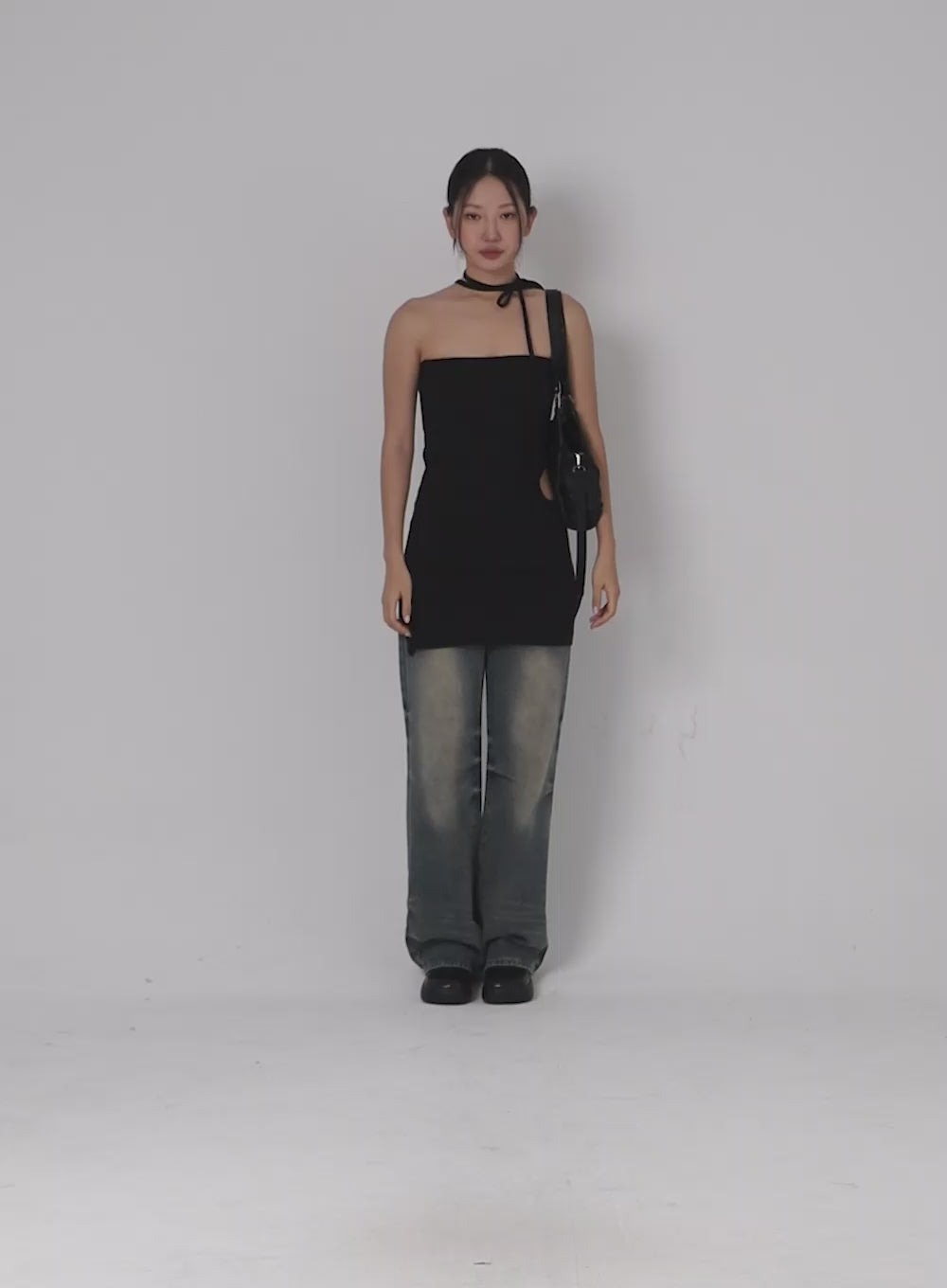 v-neck-sleeveless-sweater-dress-oo312 / Black