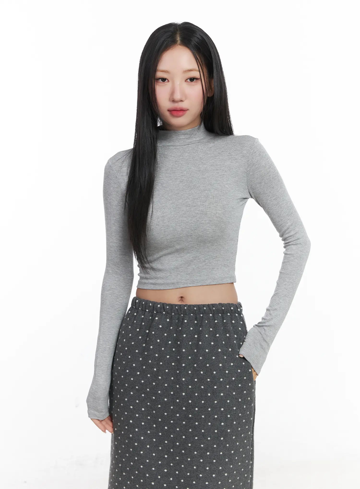 Basic Mock Neck Long Sleeve Crop Top CD529
