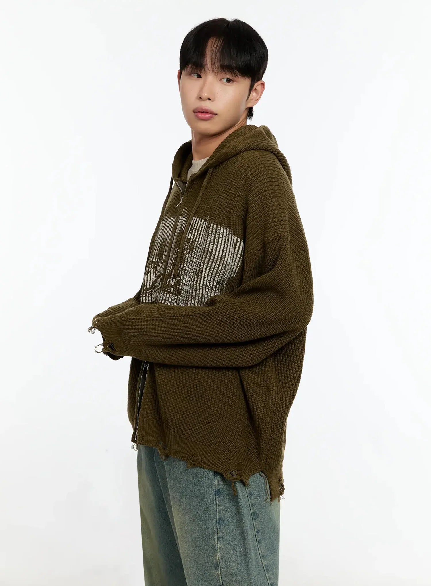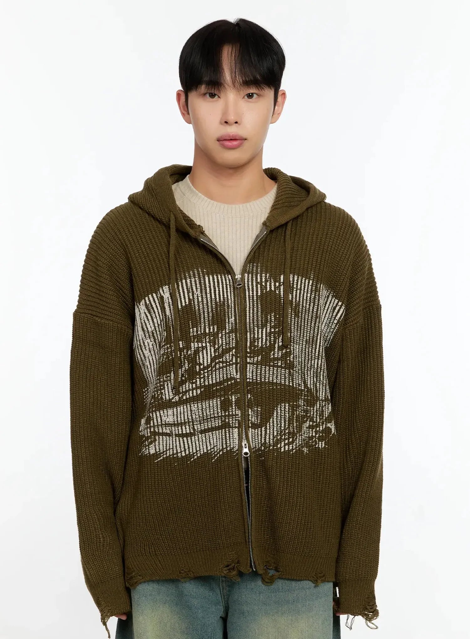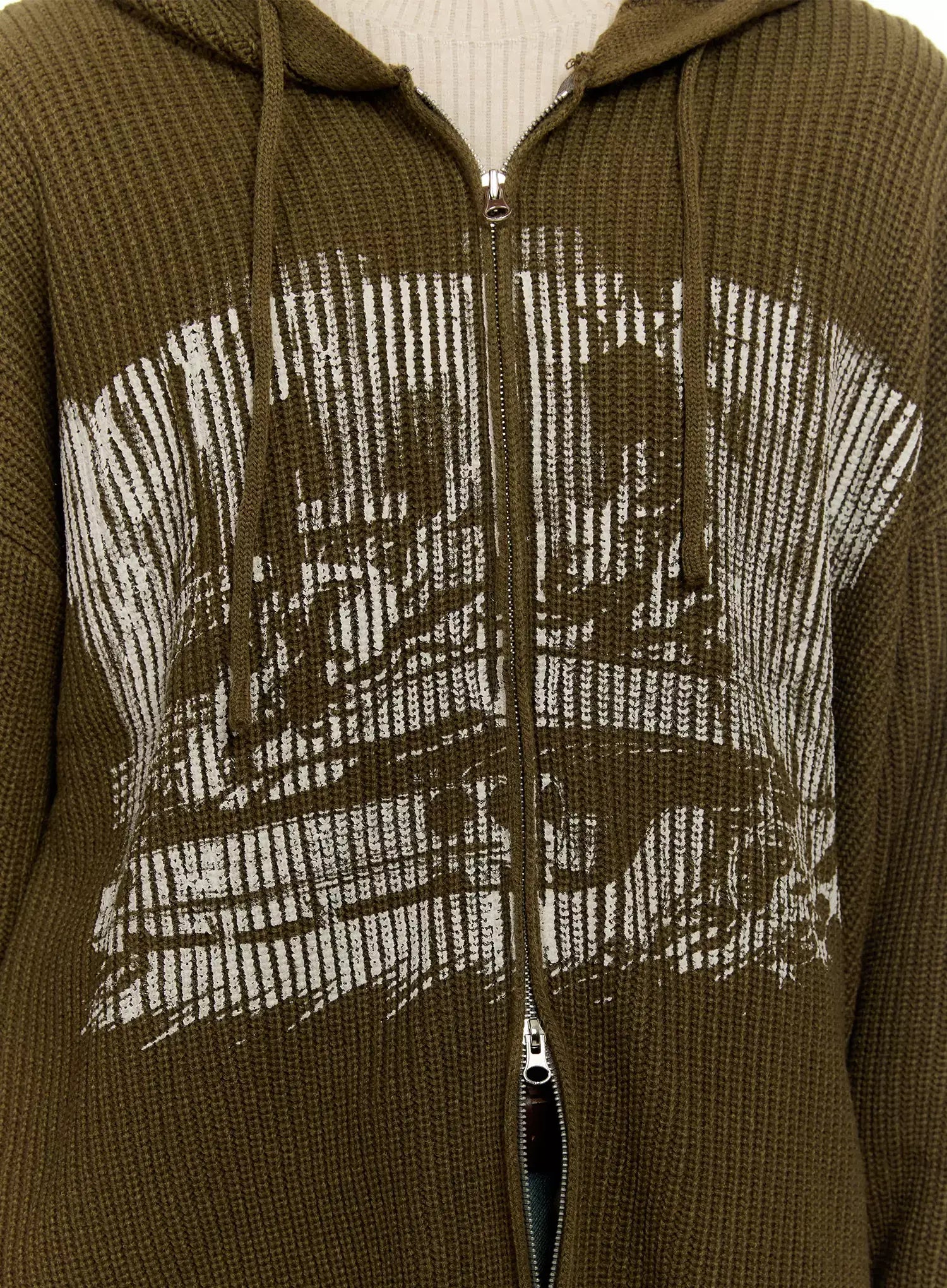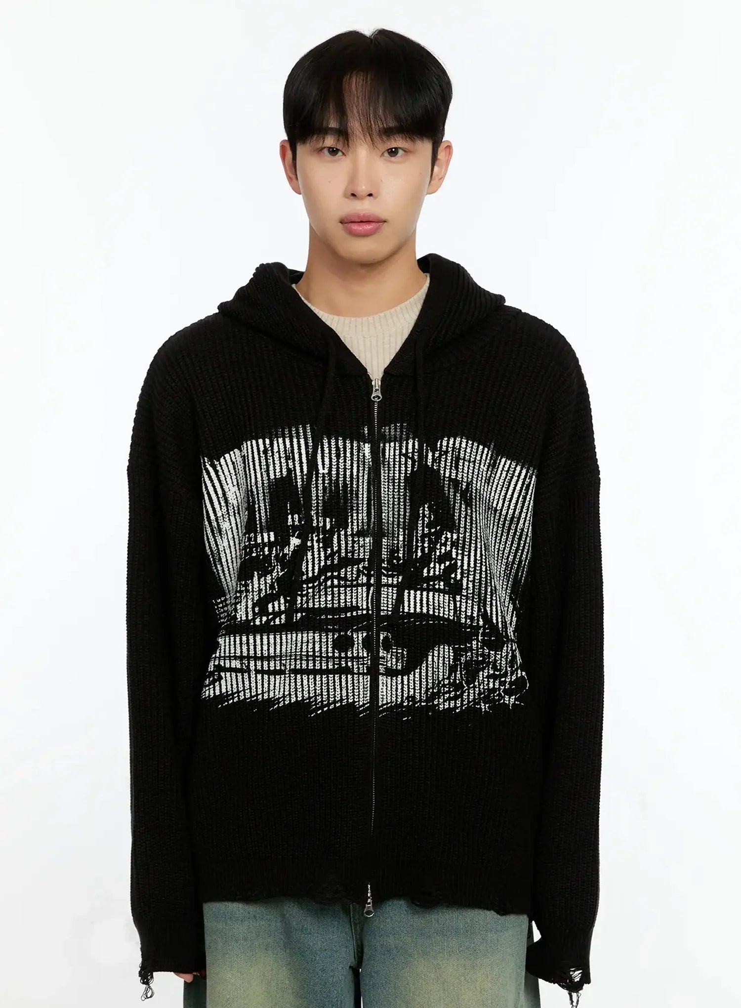 Men's Laser-Printed Knit Hooded Zip-Up IN525