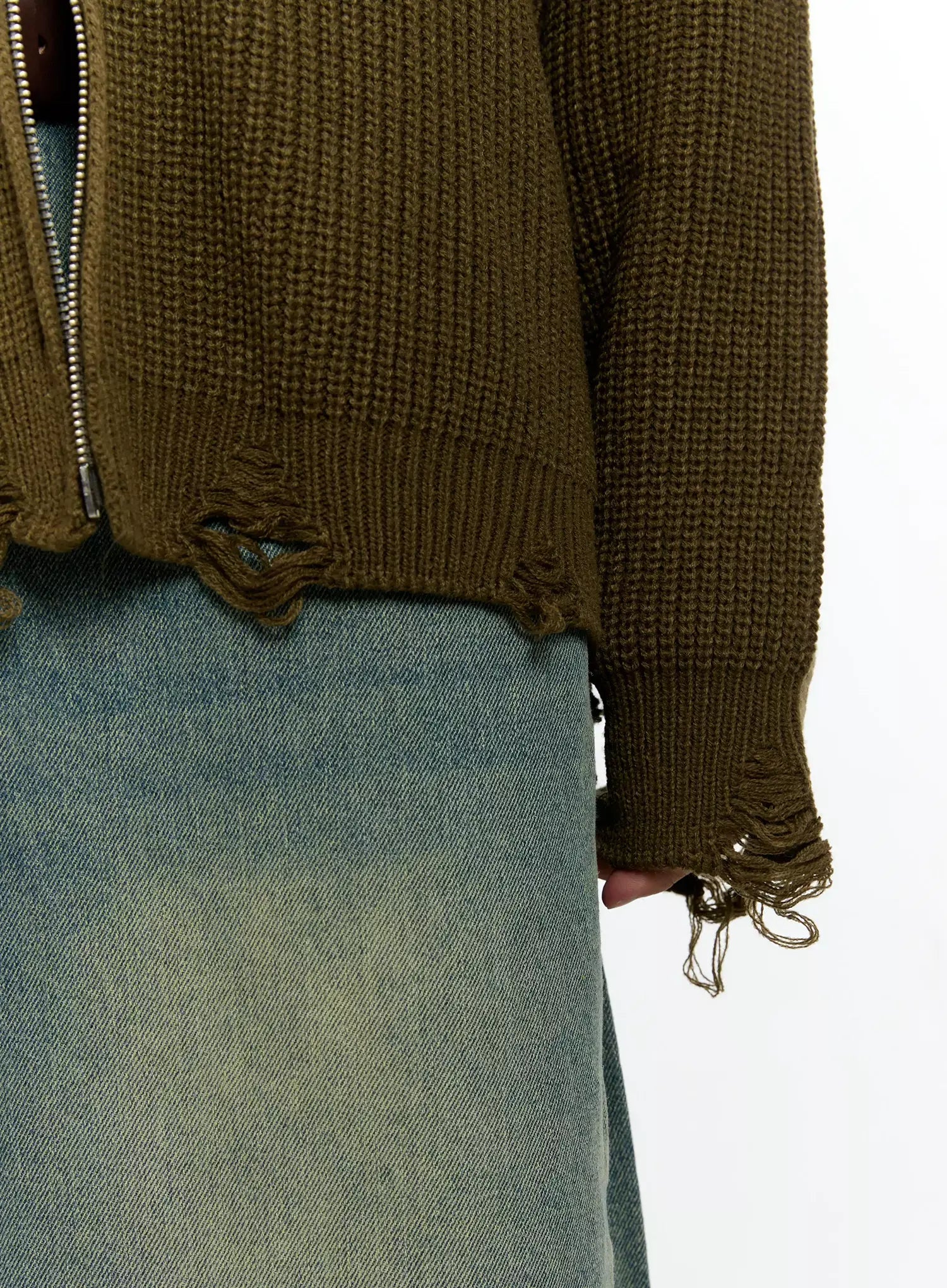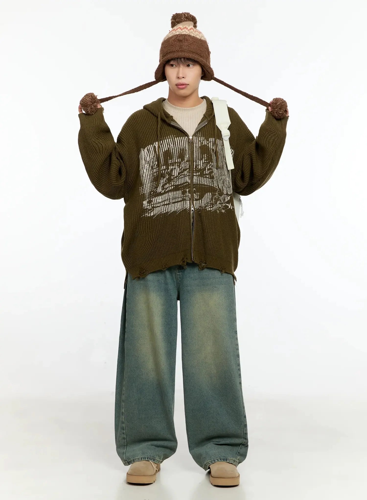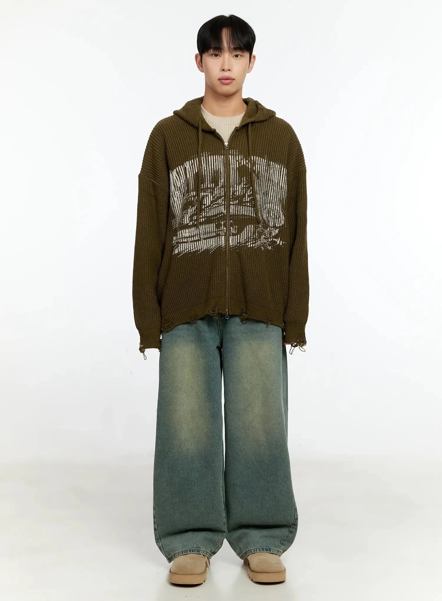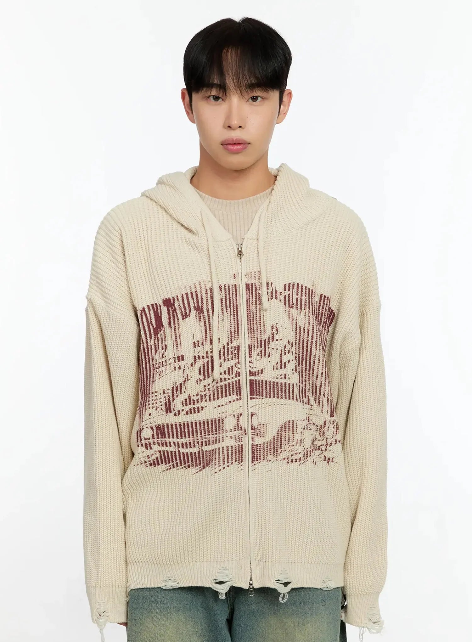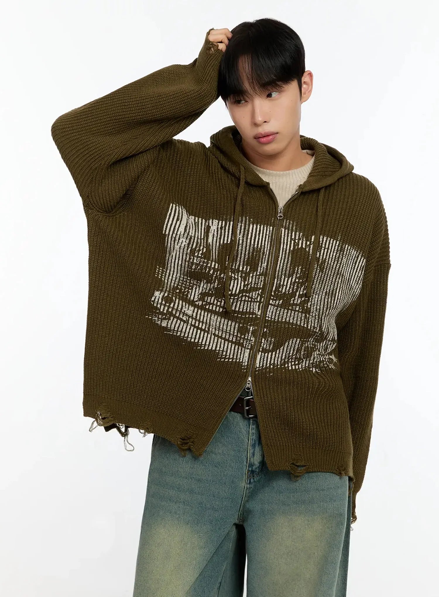 Men's Laser-Printed Knit Hooded Zip-Up IN525