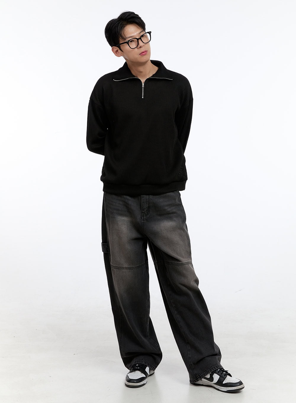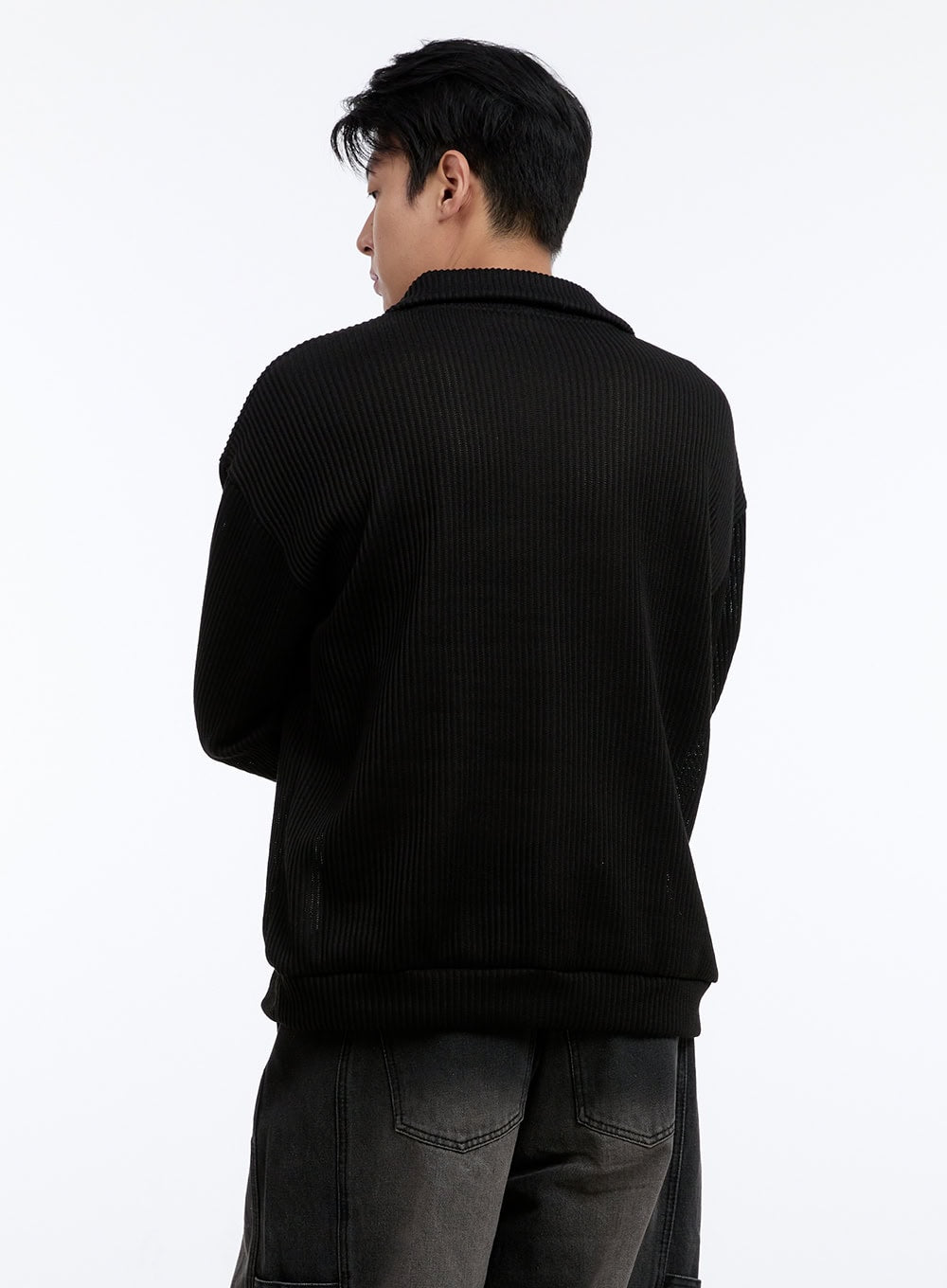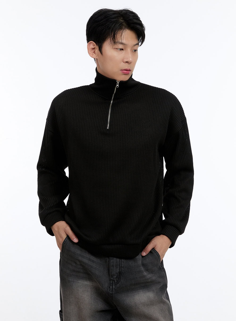 Men's Soft Cable Knit Zip-Up Pullover IG427