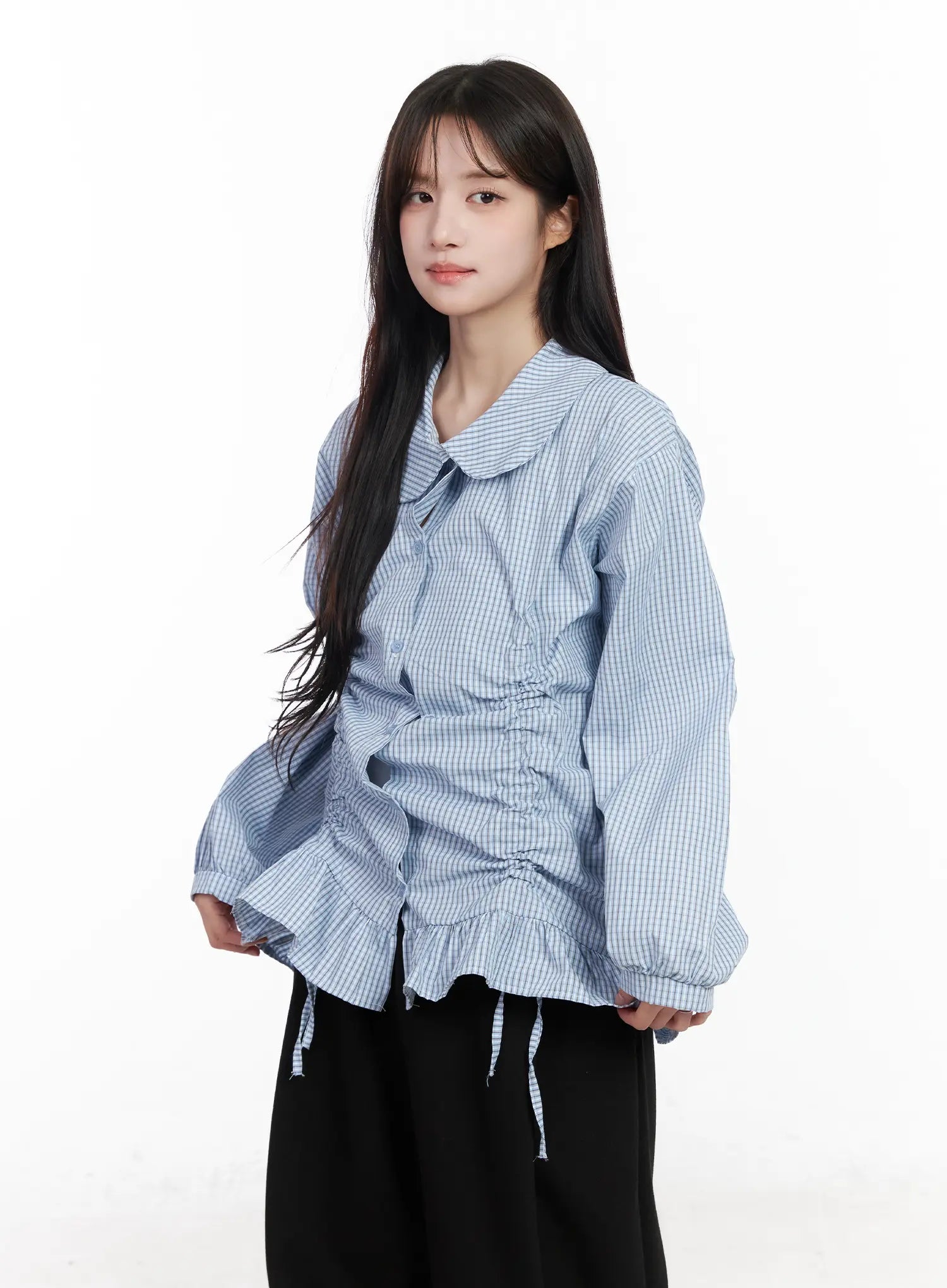 Oversized Checkered Drawstring Shirt CM531