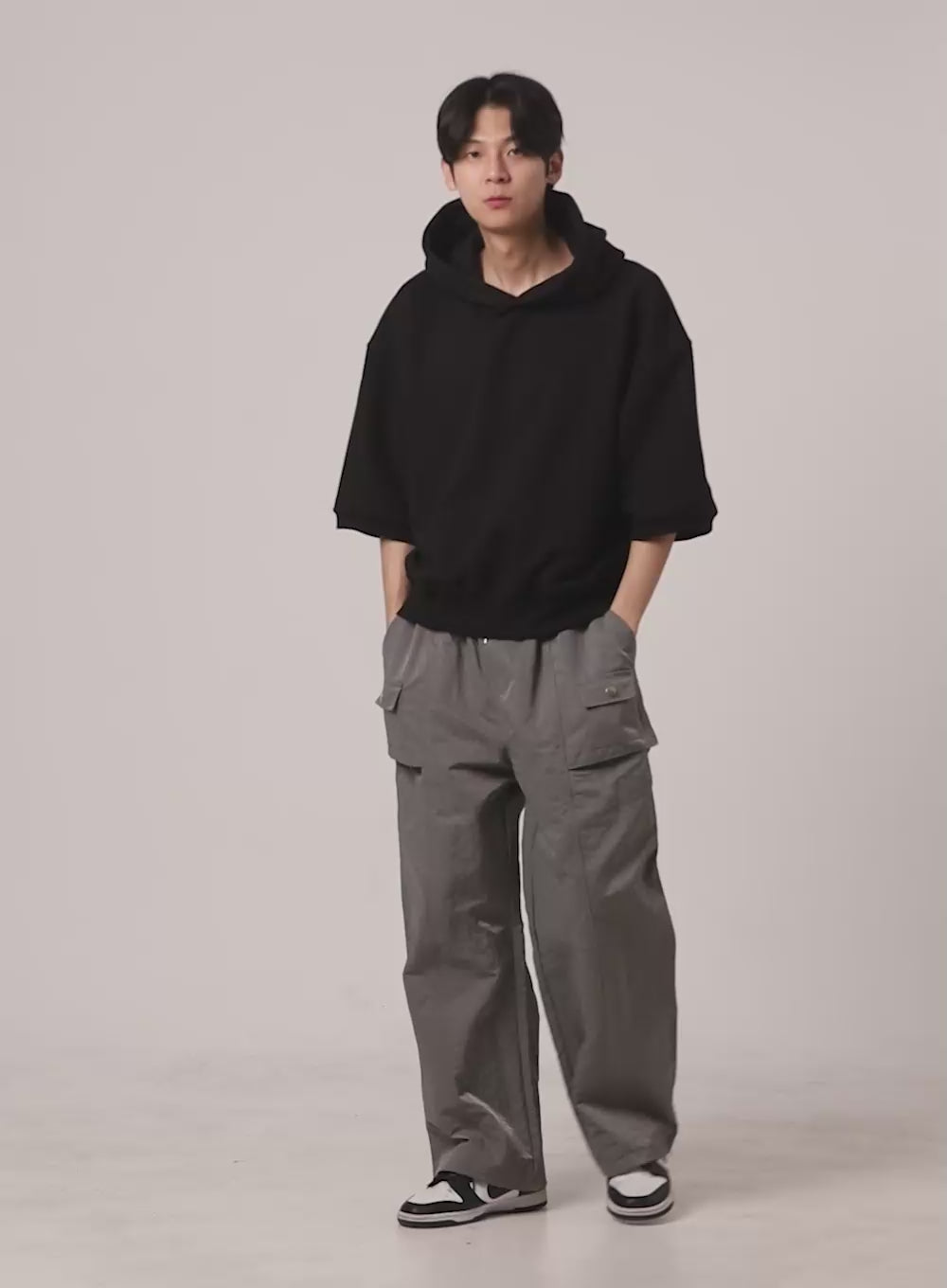 Men's Cozy Boxy Fit Hooded Sweatshirt (Black) IU405
