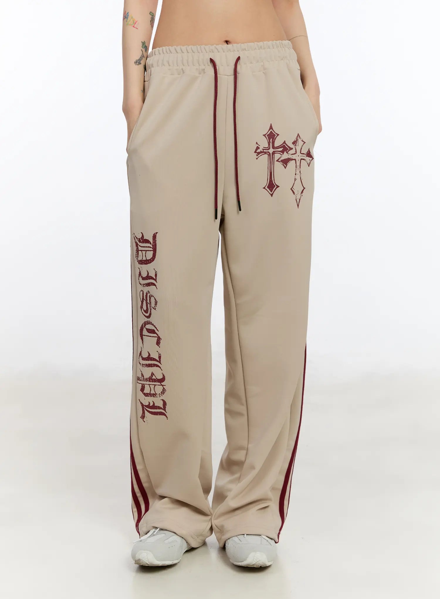 Graphic Print Wide Track Pants CA508