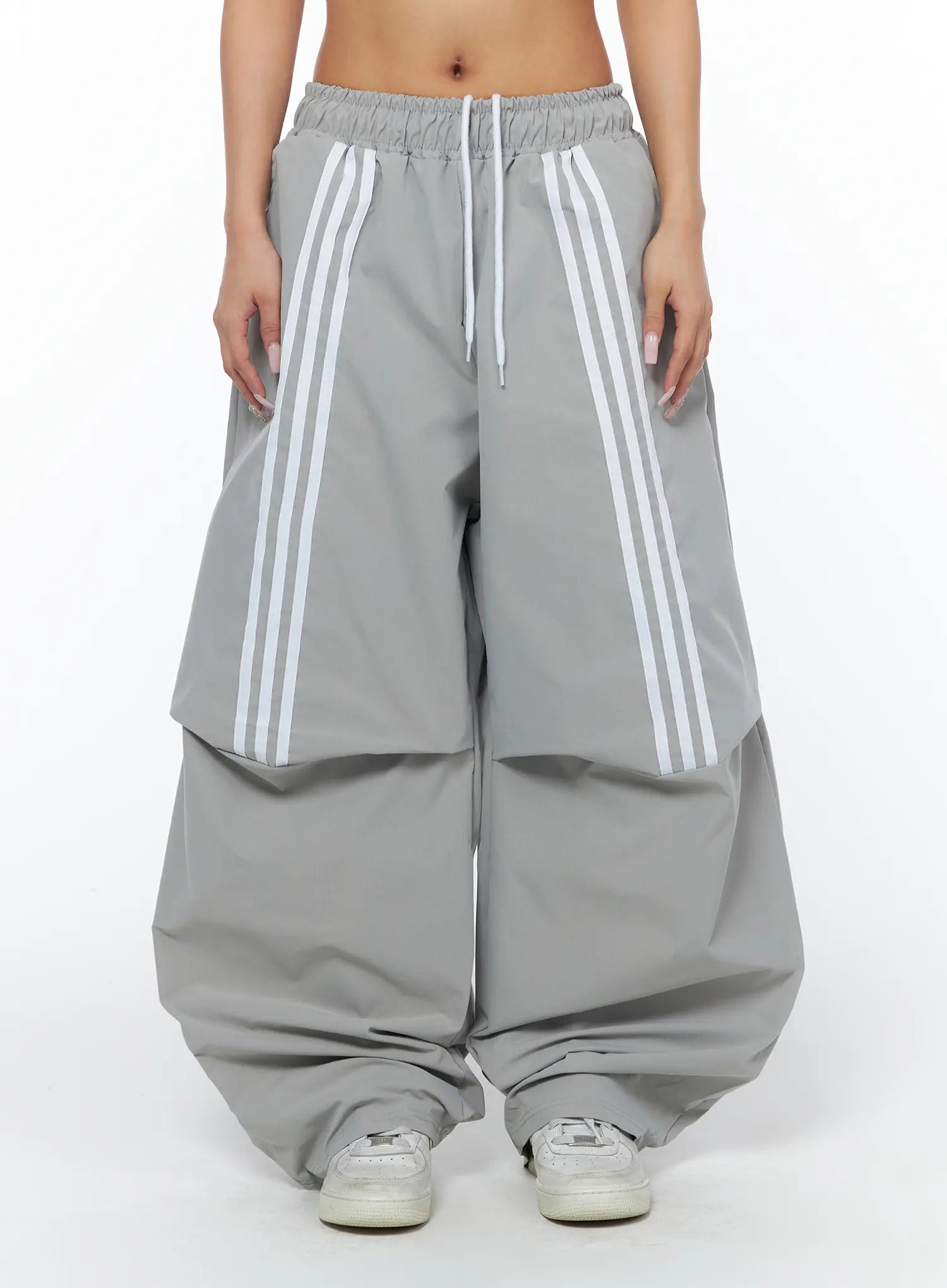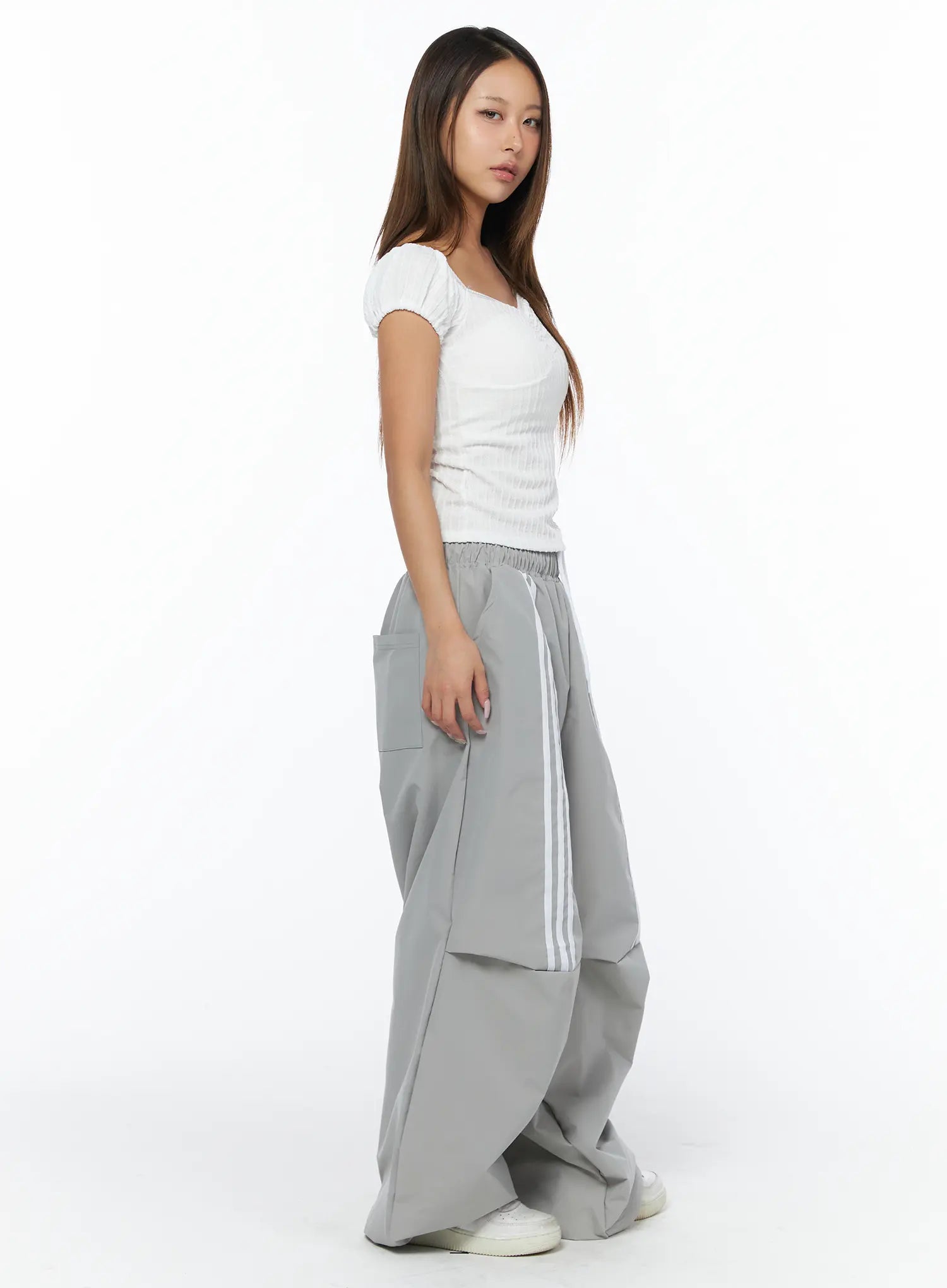 Wide Leg Athletic Pants with Stripe Detail CA516