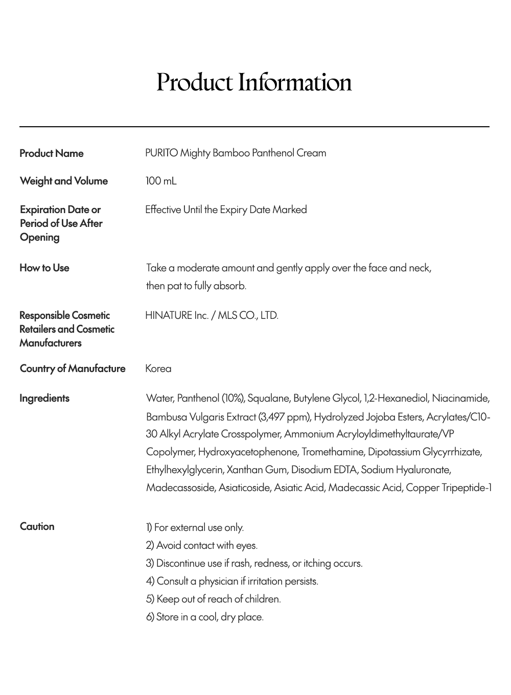 - 3,497 ppm of Korean Bamboo extract helps keep the skin soft and elastic.