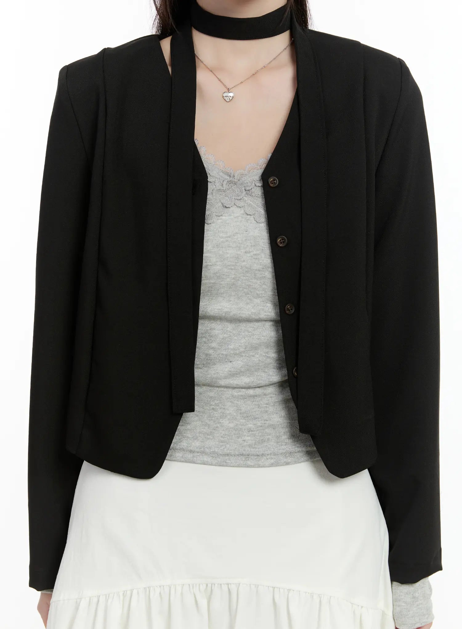 Chic U-Neck Crop Jacket with Scarf CM505
