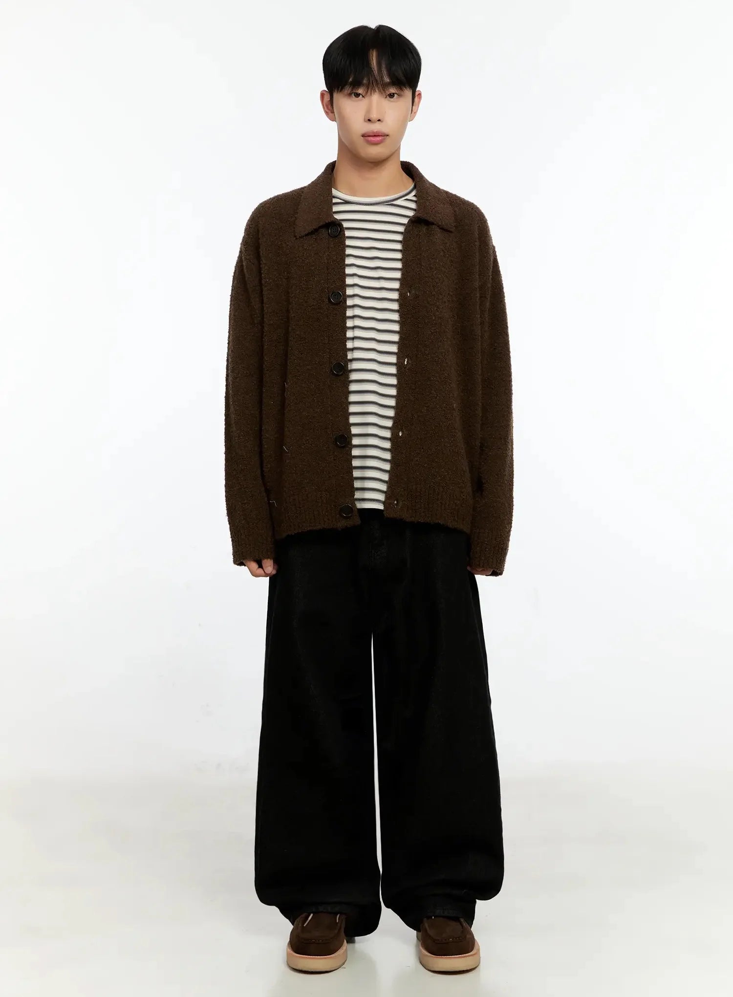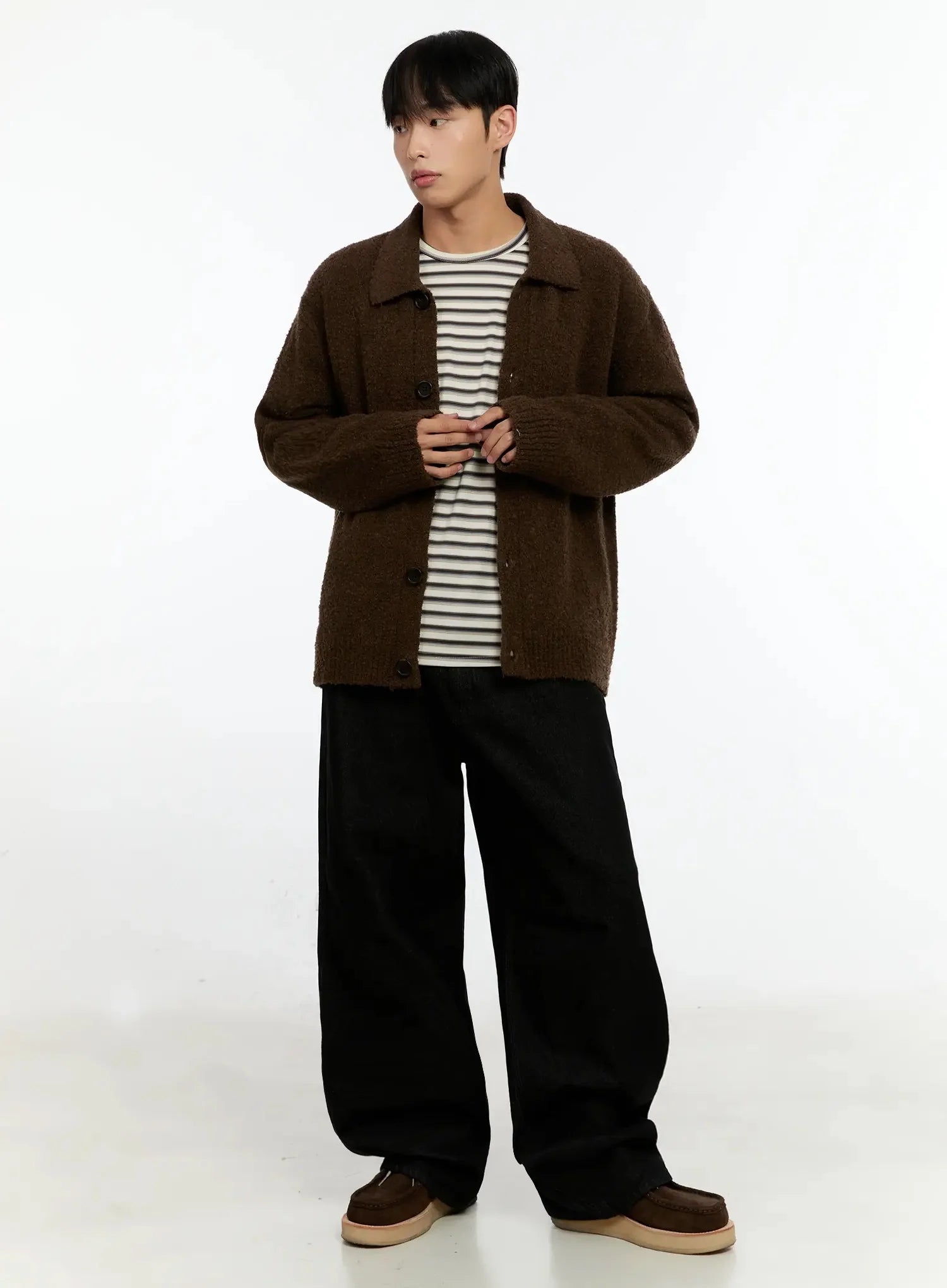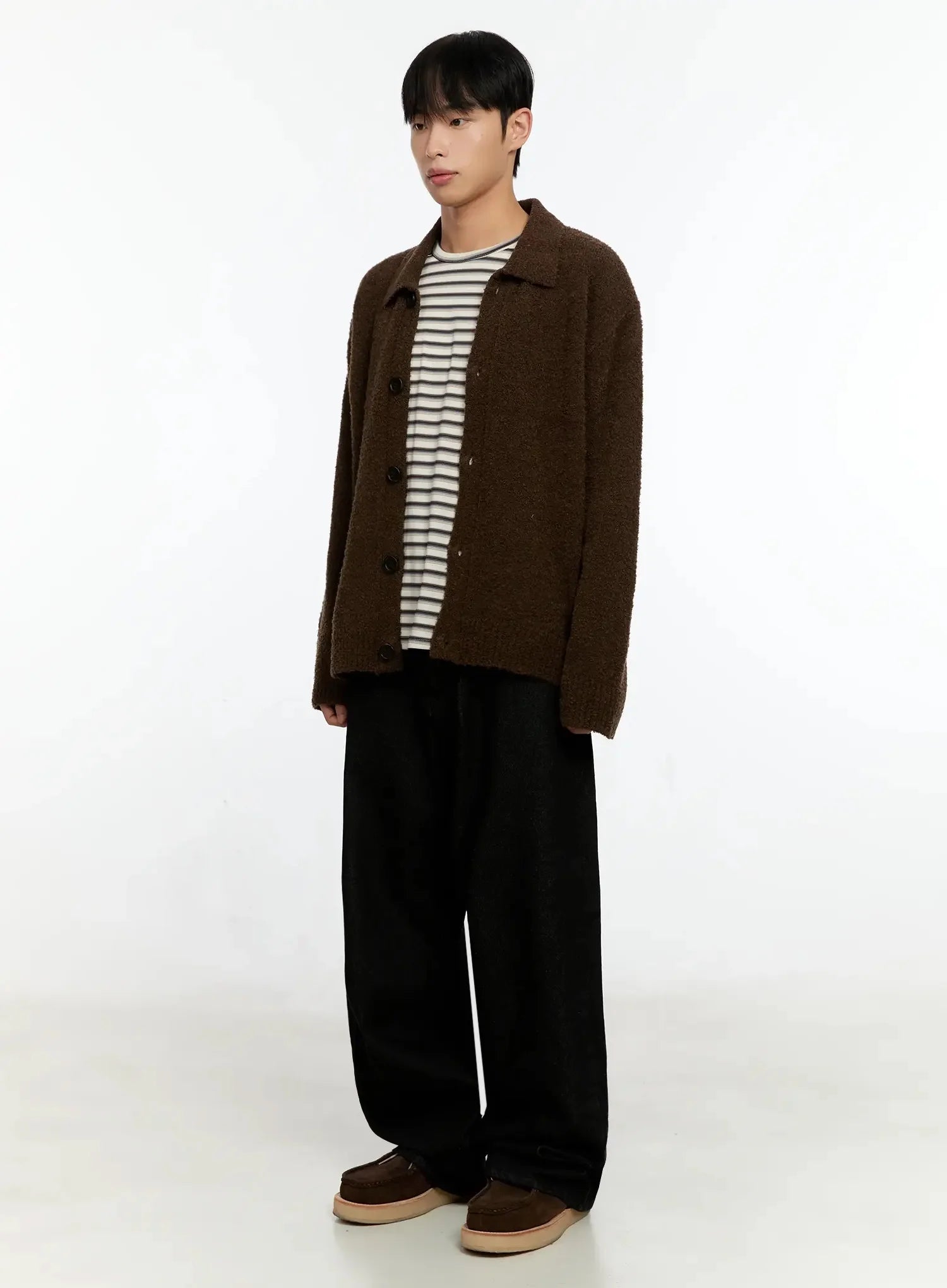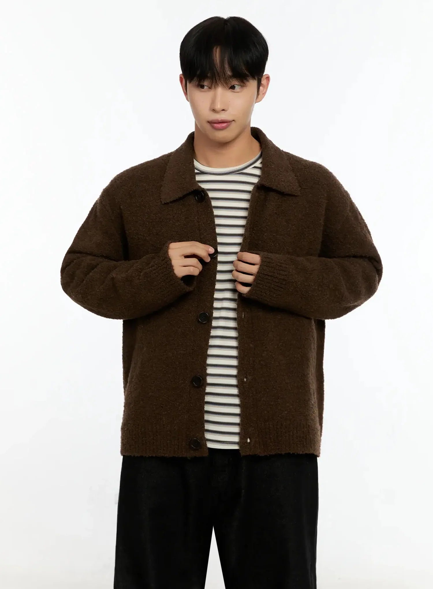 Men's Simple Wool Collar Cardigan IN525