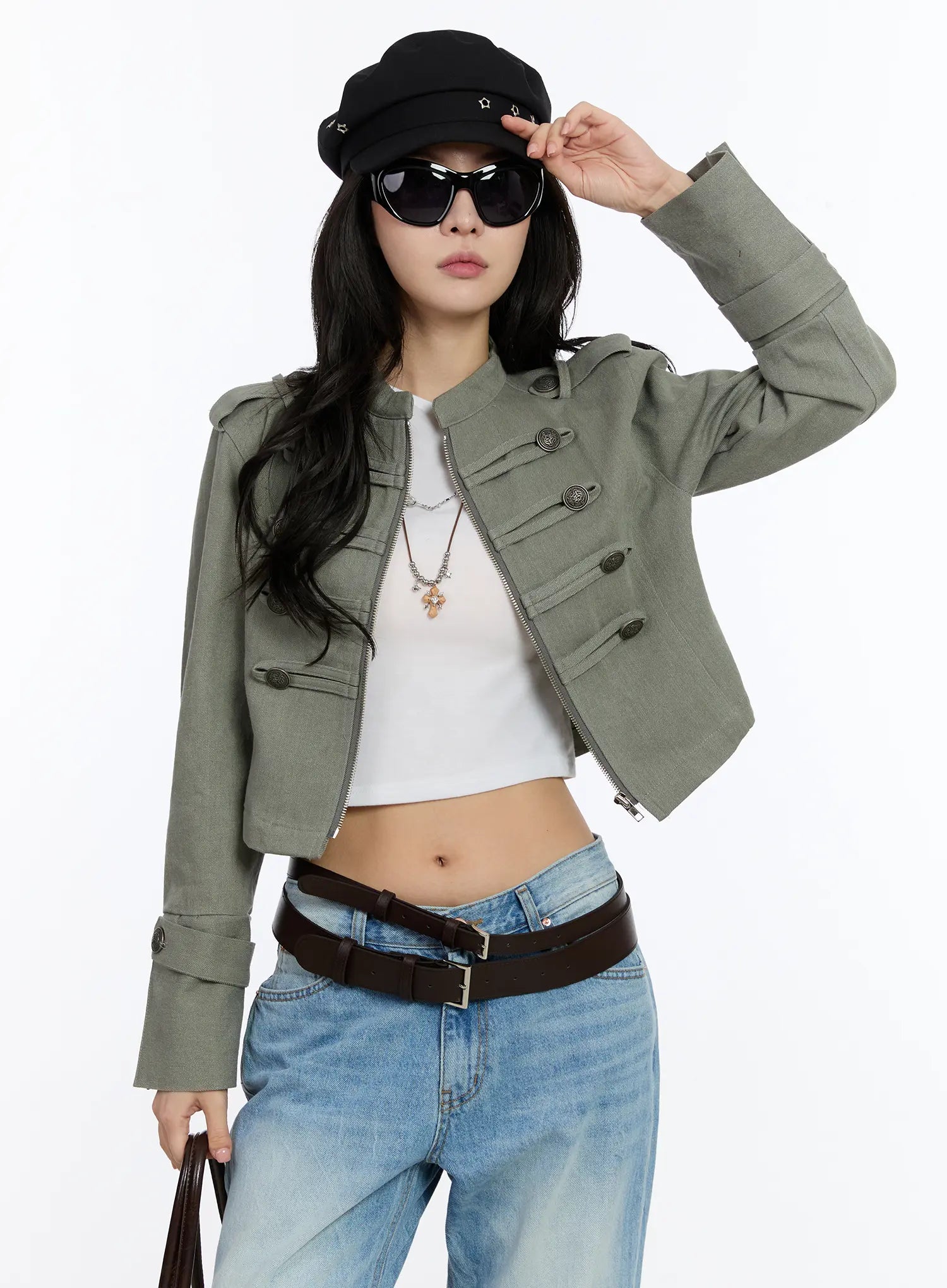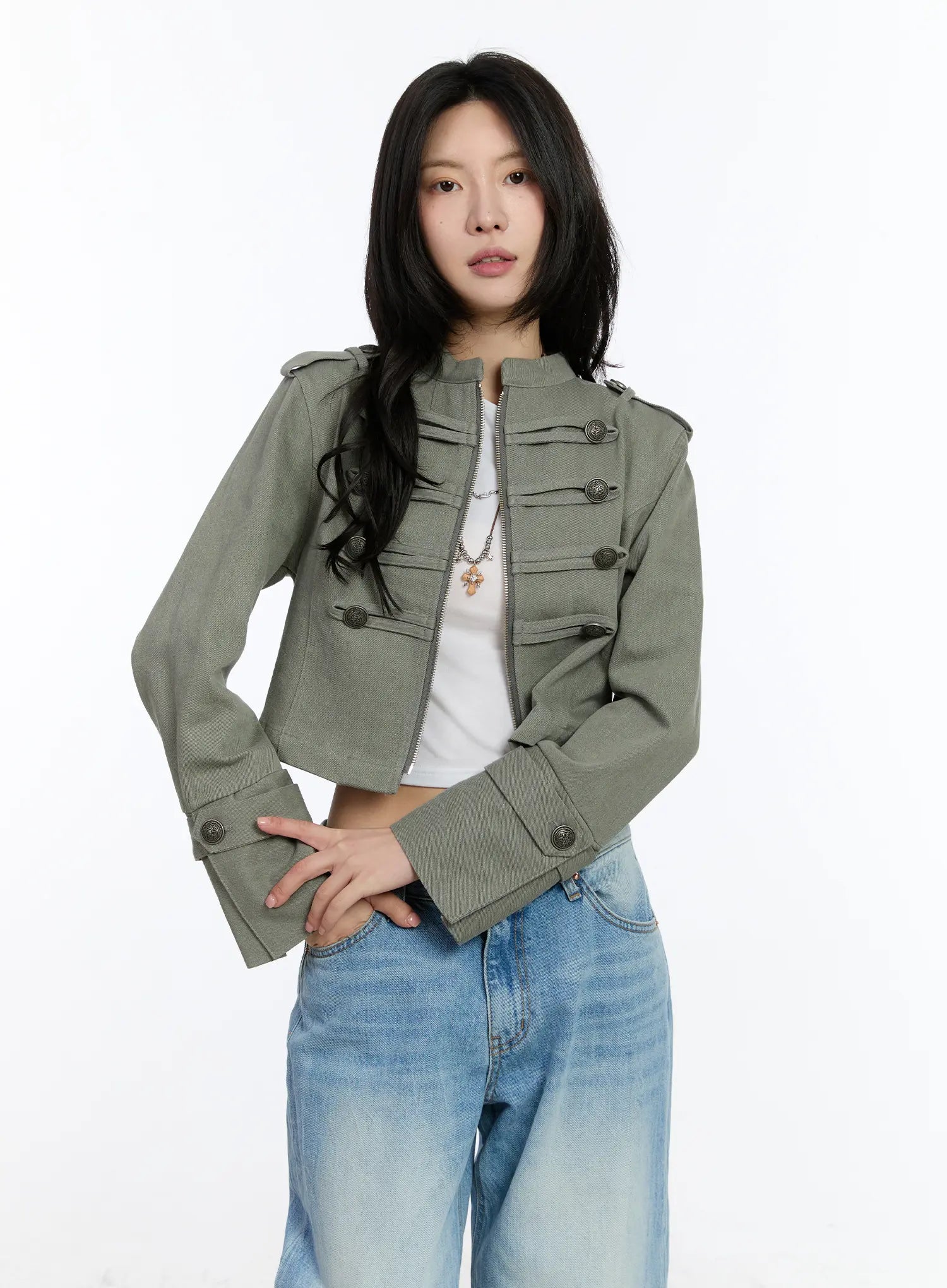 Military Style Cropped Jacket CA508
