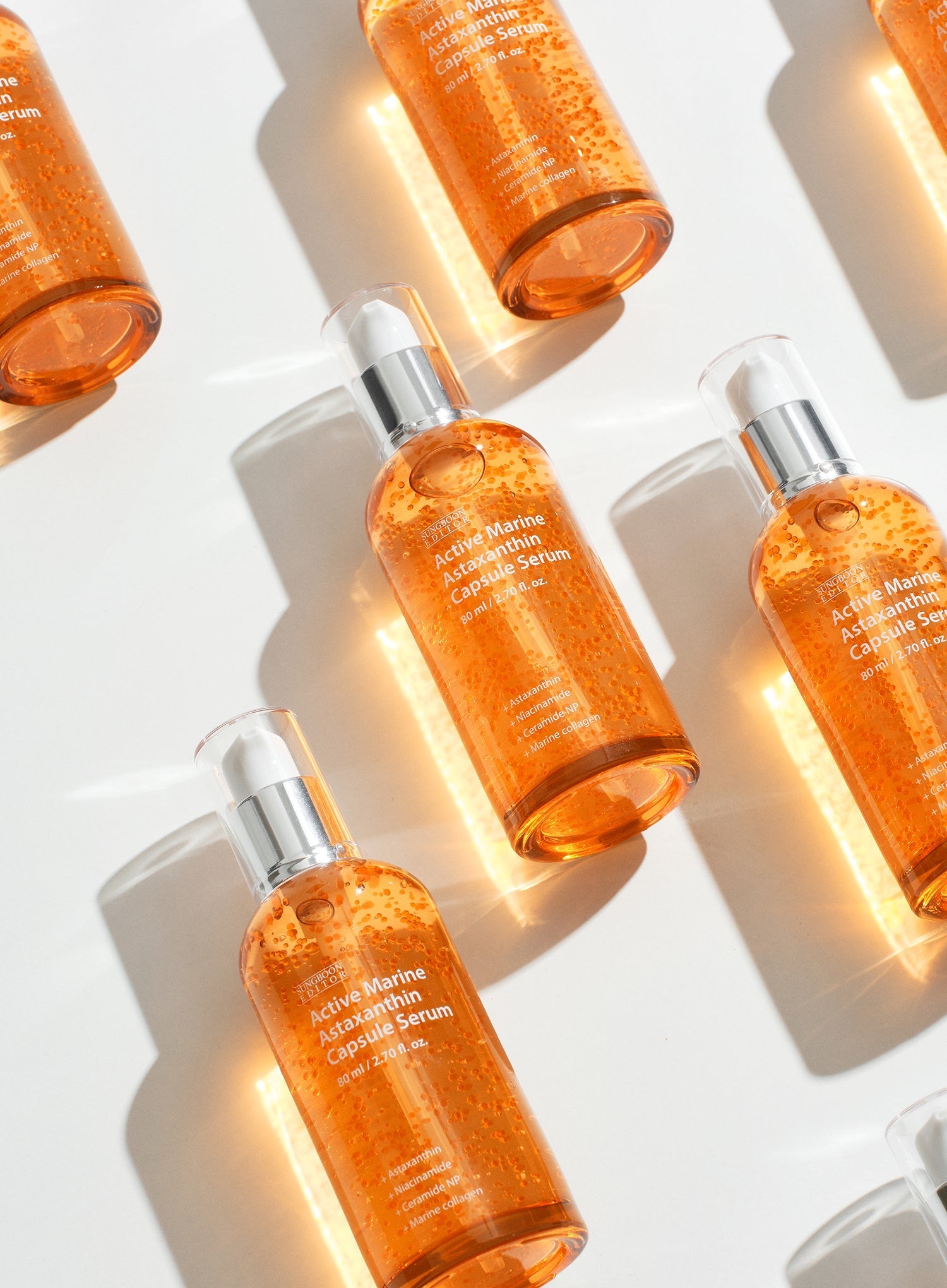 A lightweight capsule serum that delivers astaxanthin and antioxidants to skin for brighter, more even tone