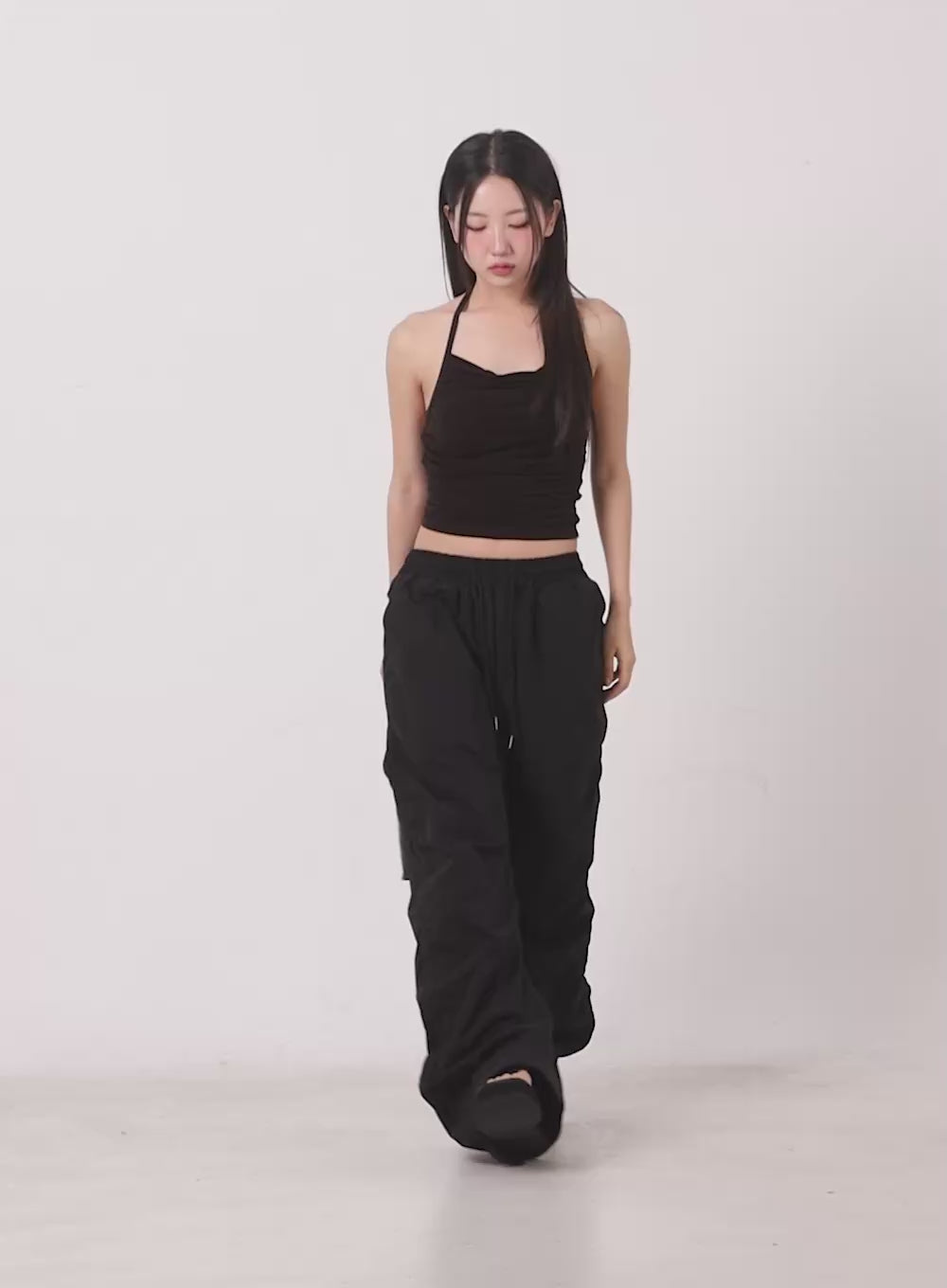 Adjustable Wide-Leg Nylon Pants IU509
