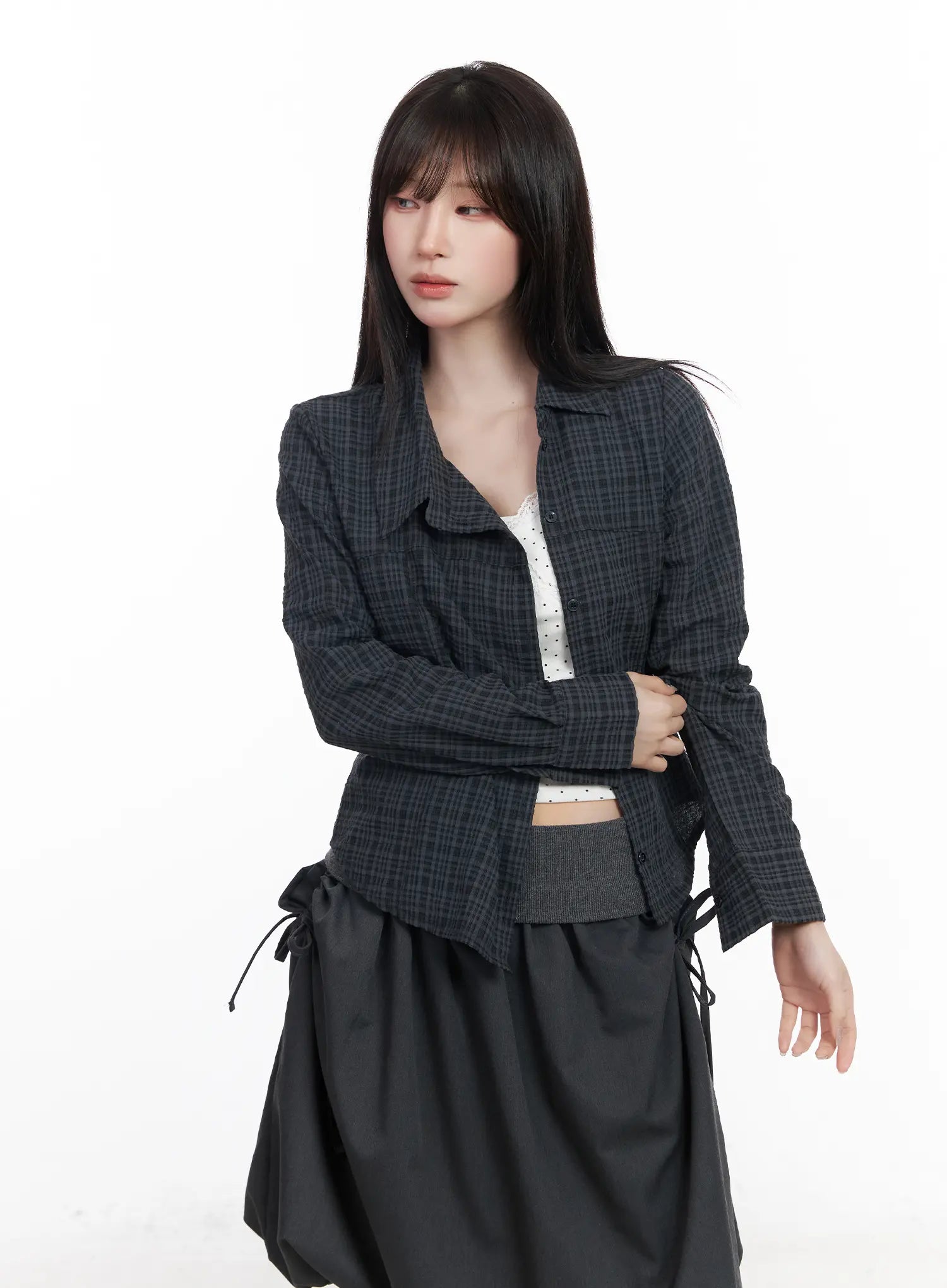 Asymmetric Plaid Long Sleeve Shirt CF523