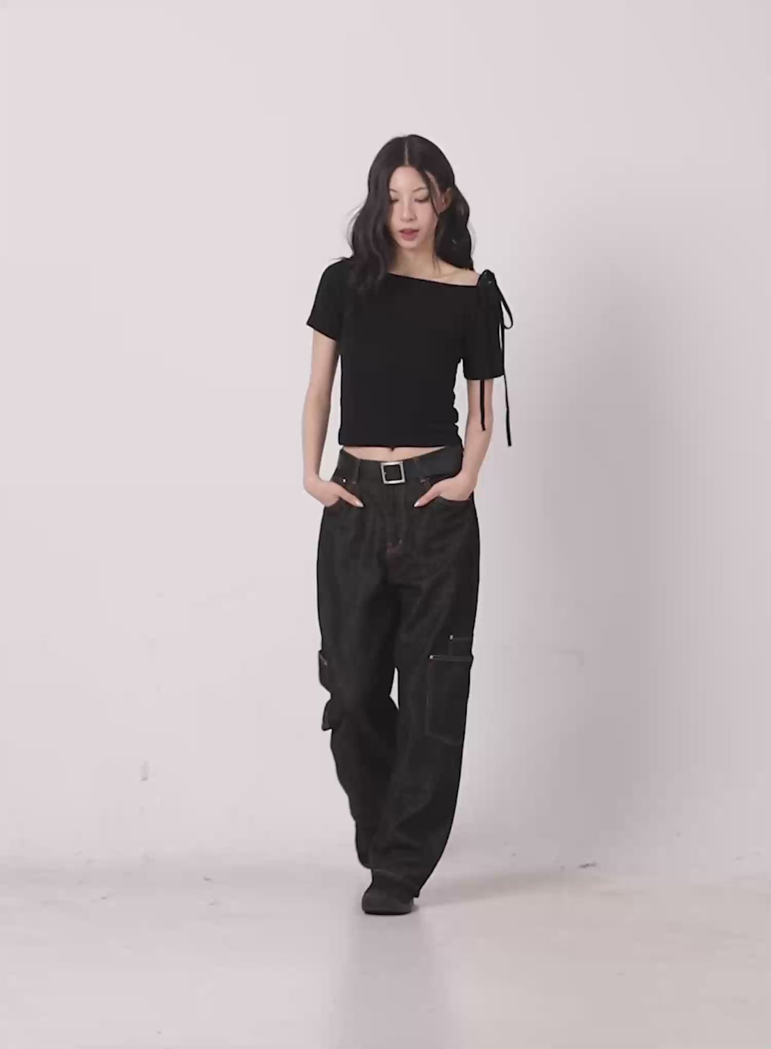 Asymmetric Shoulder-Tie T-Shirt IG508