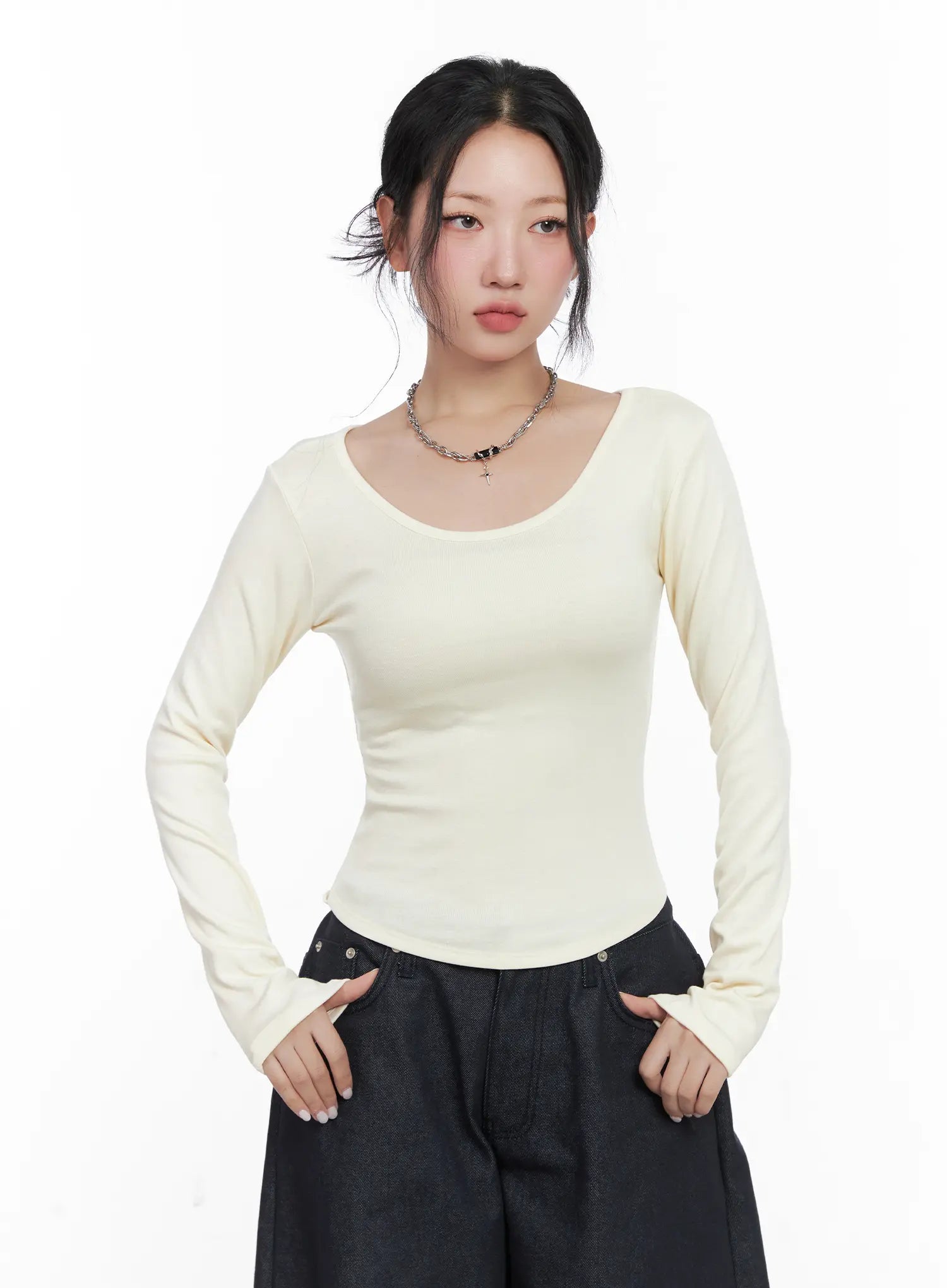 Asymmetrical Crop Long Sleeve Top CN514