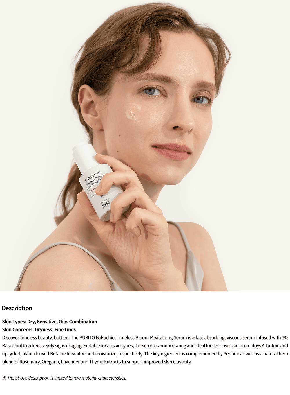 Revitalizing serum with 1% Bakuchiol to improve fine lines and skin texture.