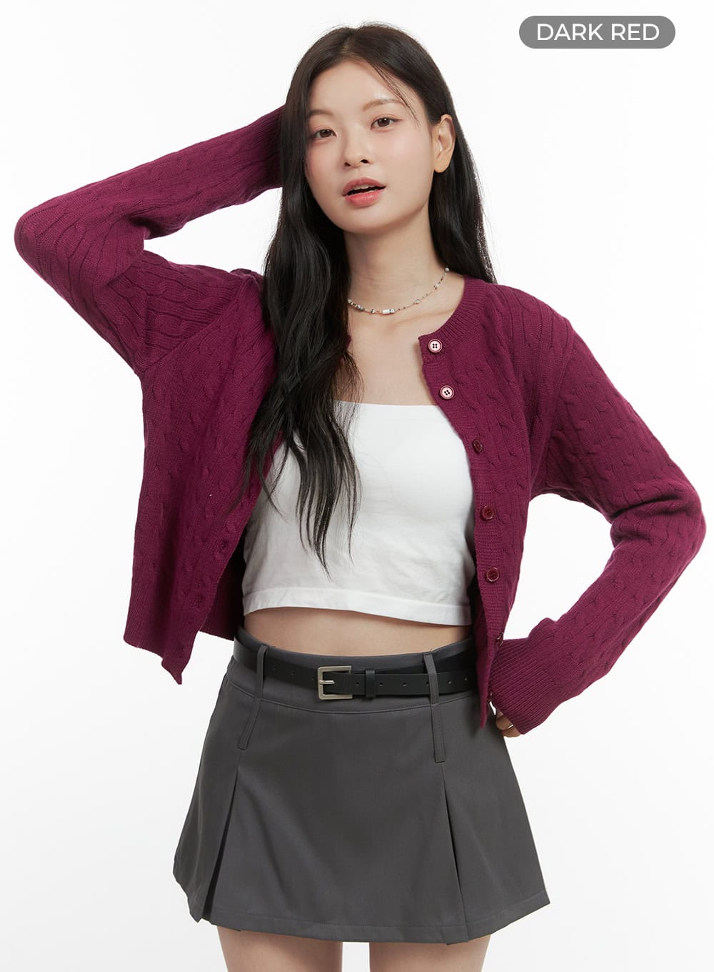 Basic Cable Knit Buttoned Cardigan OS423