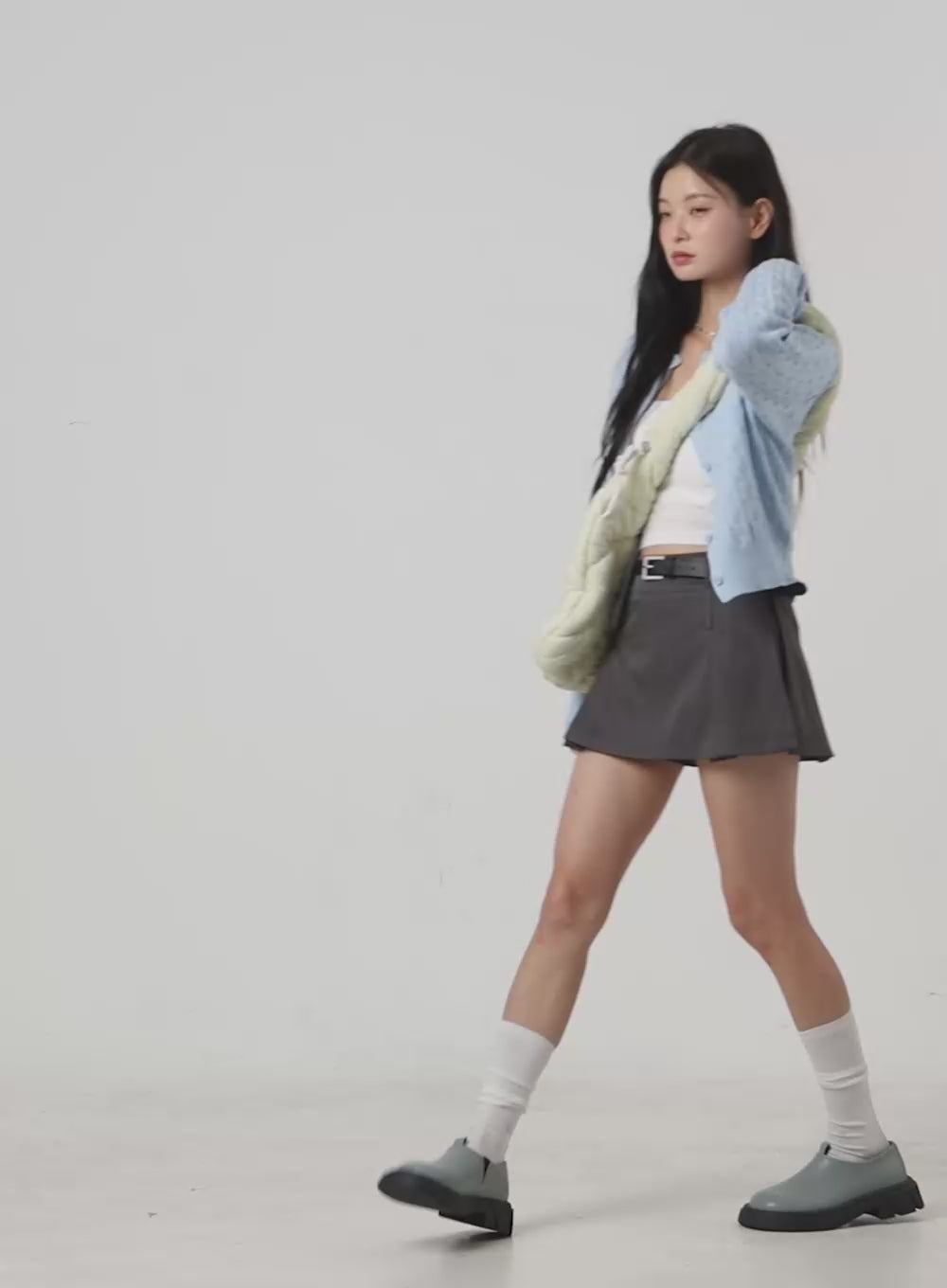 Model is wearing size S/M and the color Light blue.