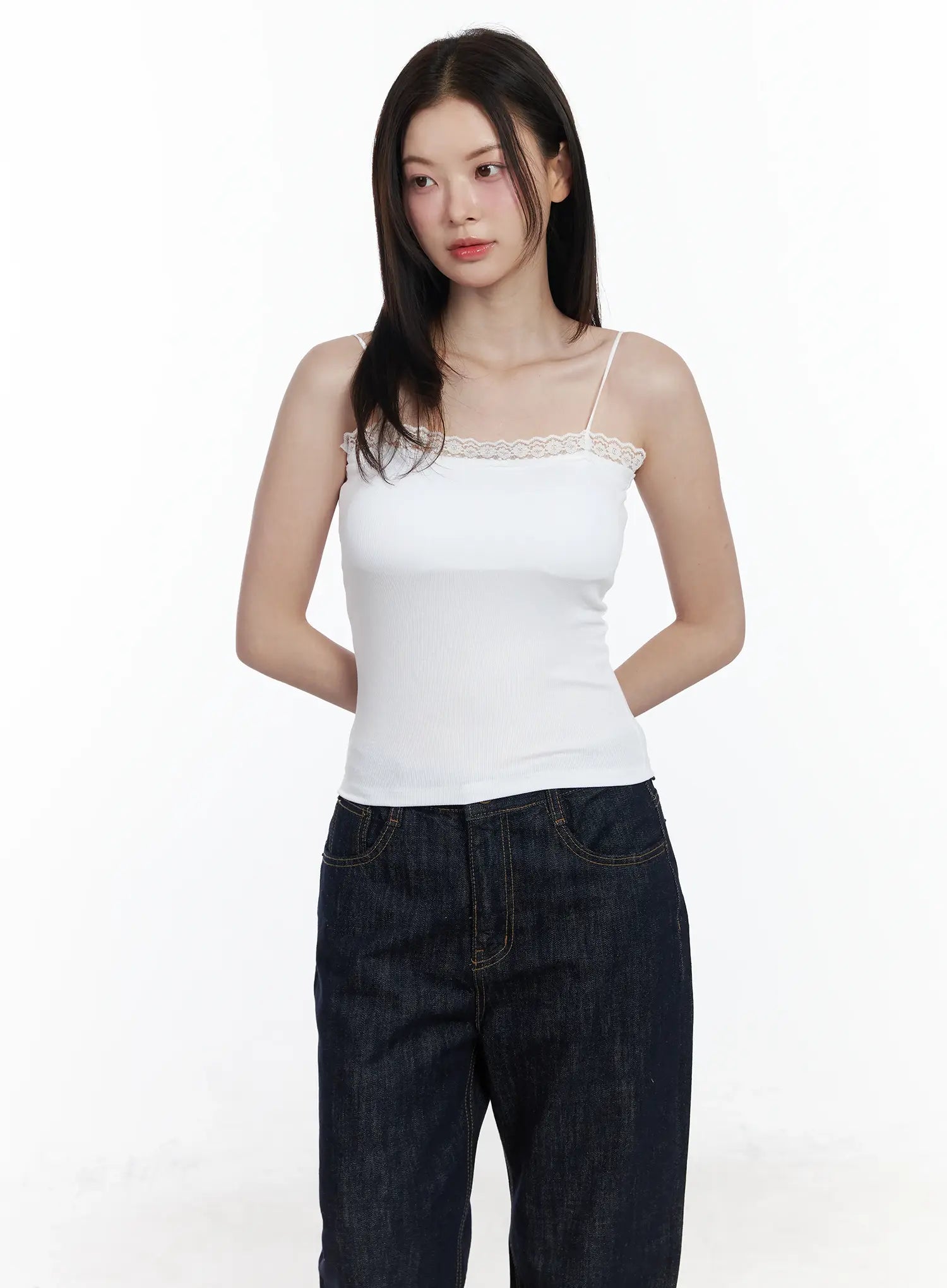 Basic Ribbed Lace Tank Top IF520