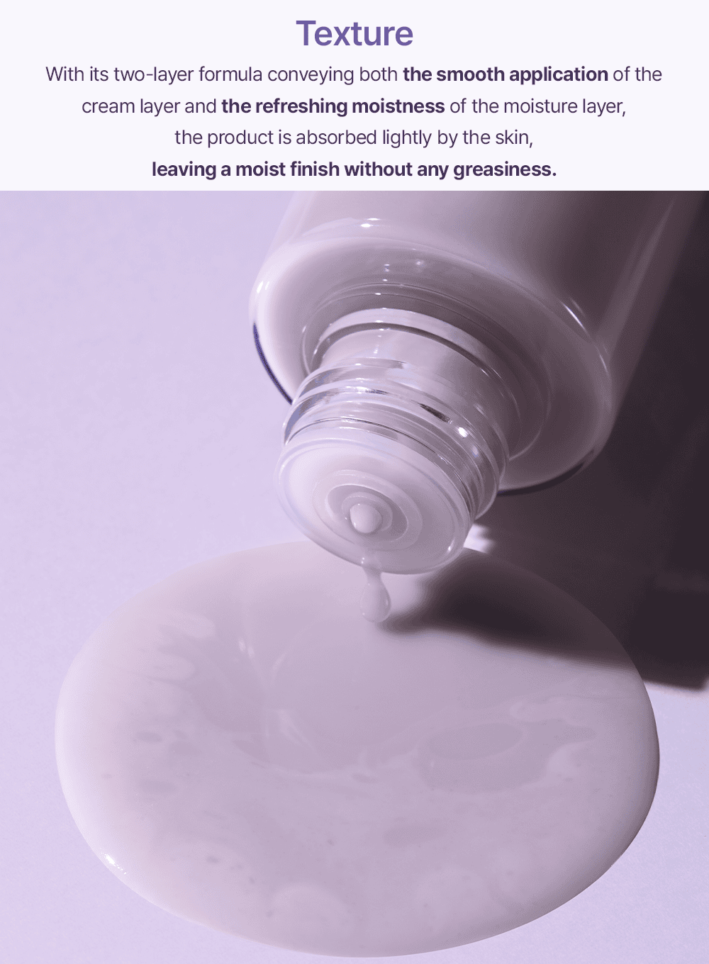 - The dual-layer formula—a balance of cream and moisture—absorbs effortlessly, leaving the skin hydrated without any greasy residue.