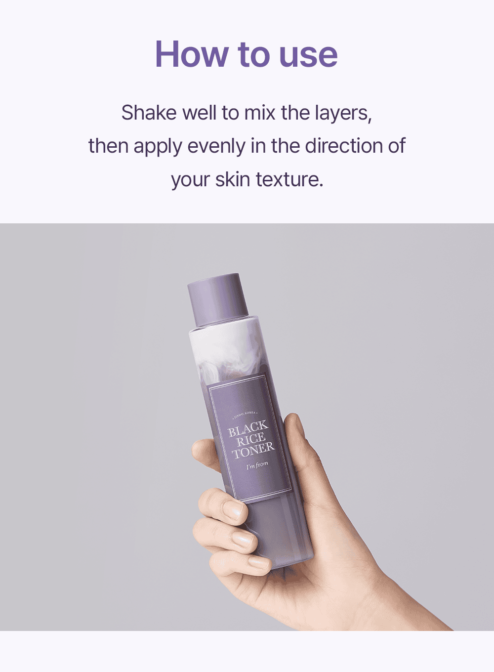 - Enriched with black rice extract, rice seed water, and rice bran oil, this toner delivers antioxidant-rich nourishment for a revitalized and healthy complexion.