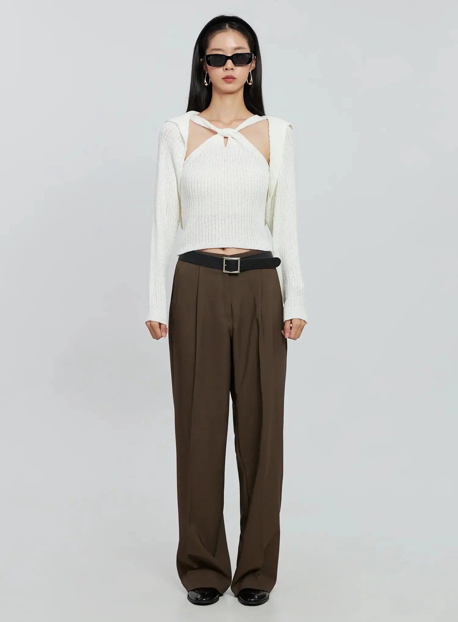 Brown Wide Leg Tailored Pants IO530