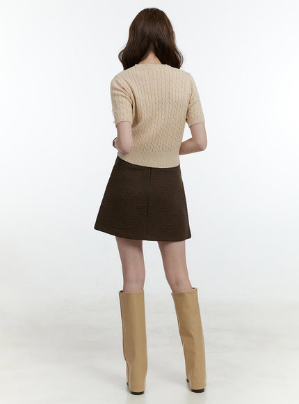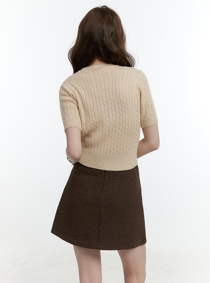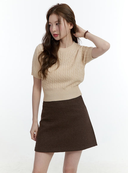Cable-Knit Short-Sleeve Crop Sweater CF504
