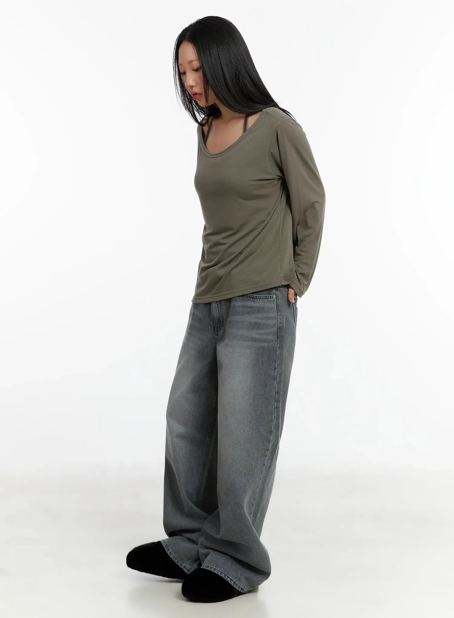 Casual Fleece Loose Fit Long Sleeve Tee ID526