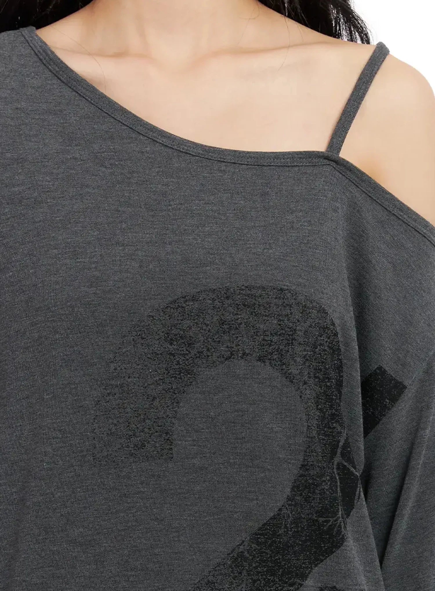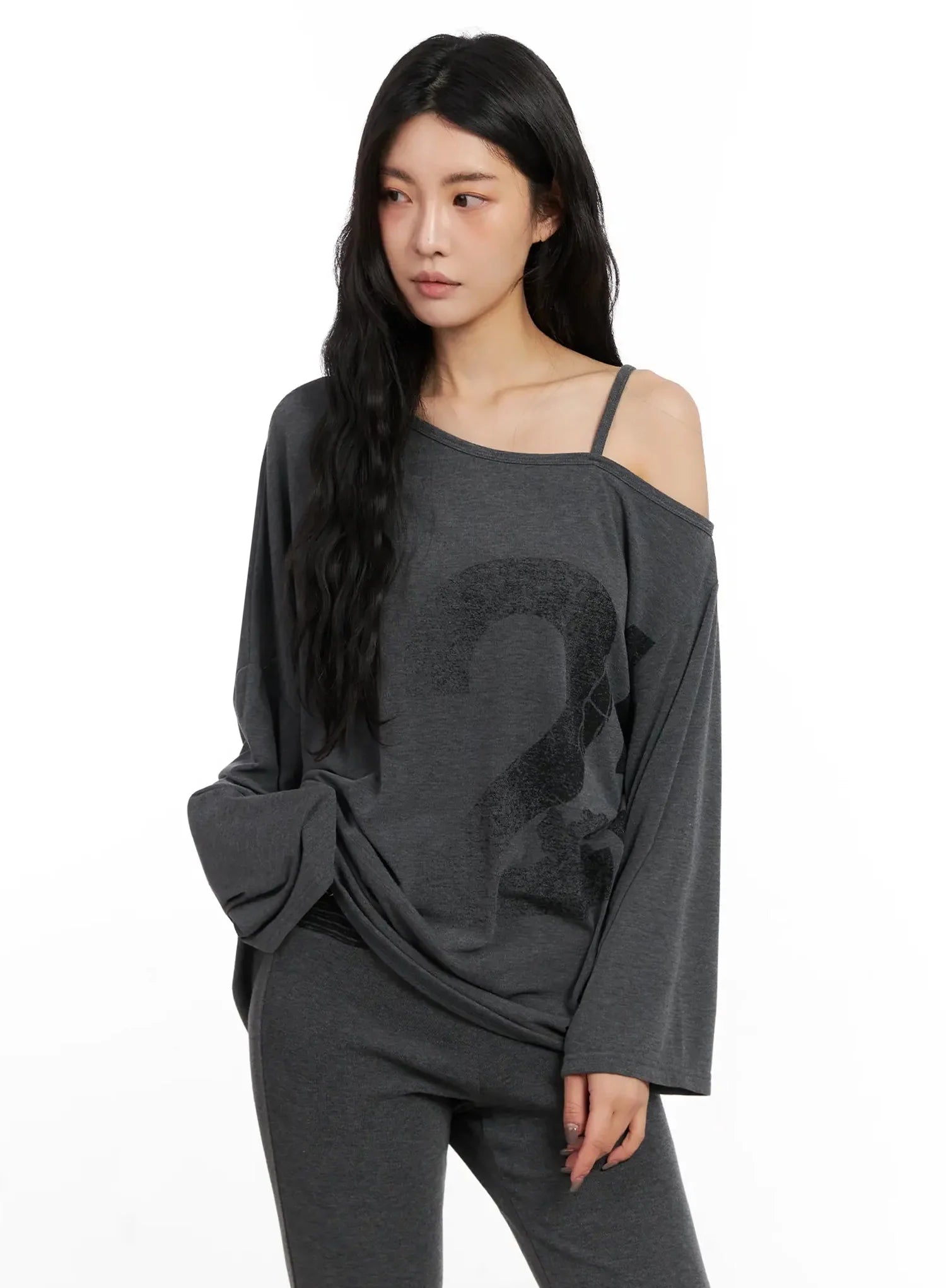 Casual Graphic Long Sleeve Off-Shoulder Top IN528