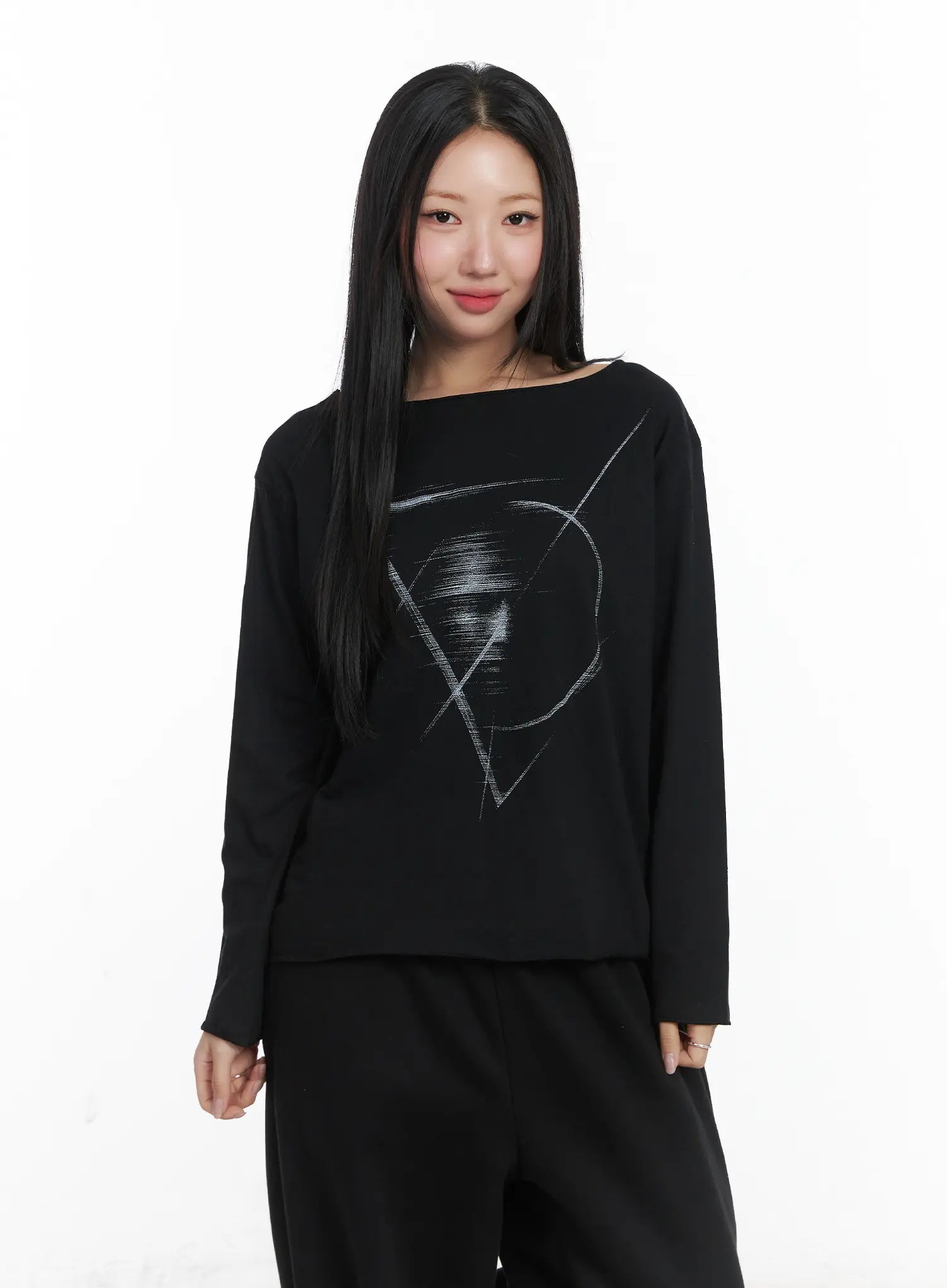 Casual Relaxed Neck Graphic Long Sleeve Tee CD530