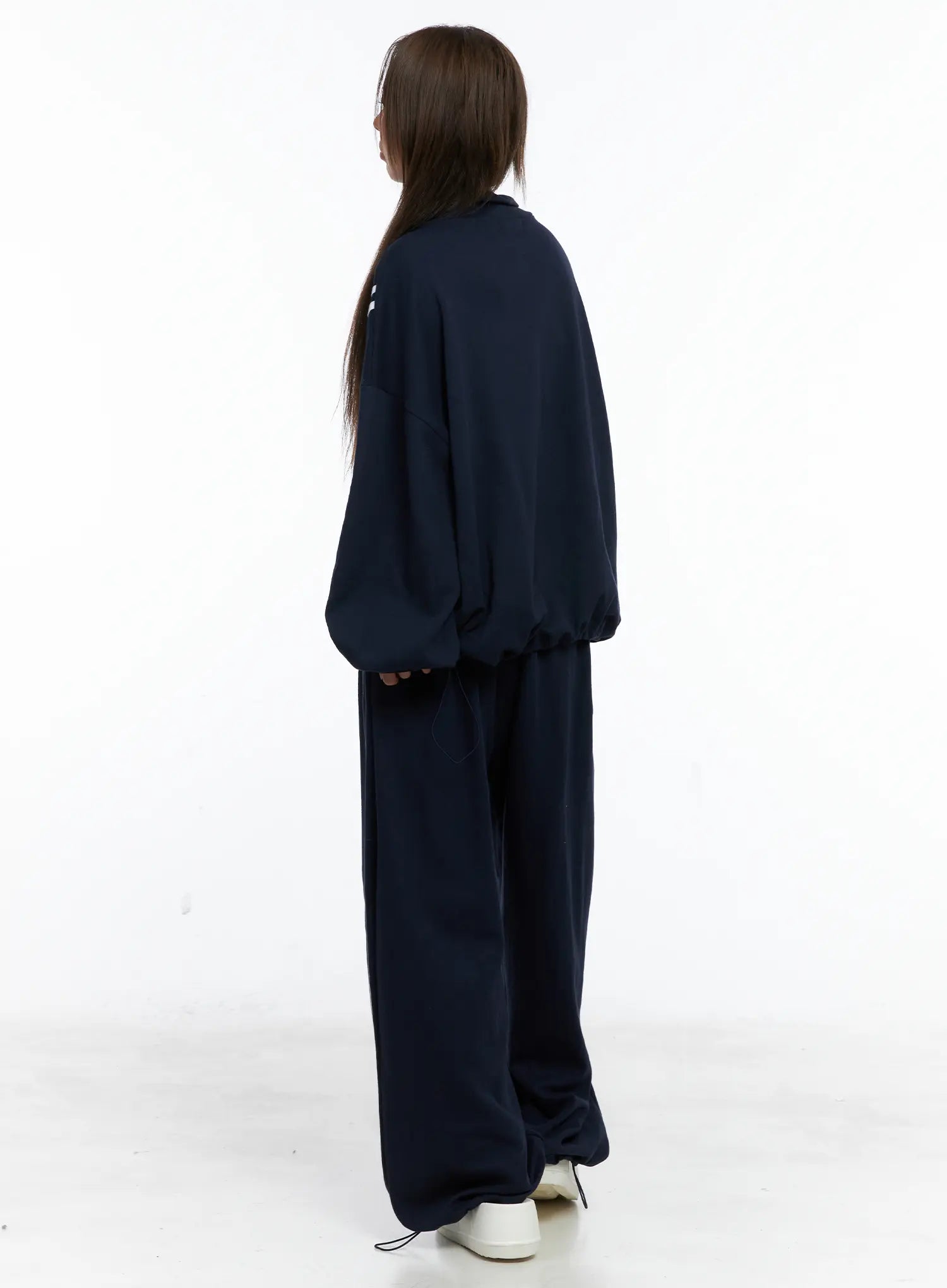 Model is wearing size M/L and the color Dark blue.