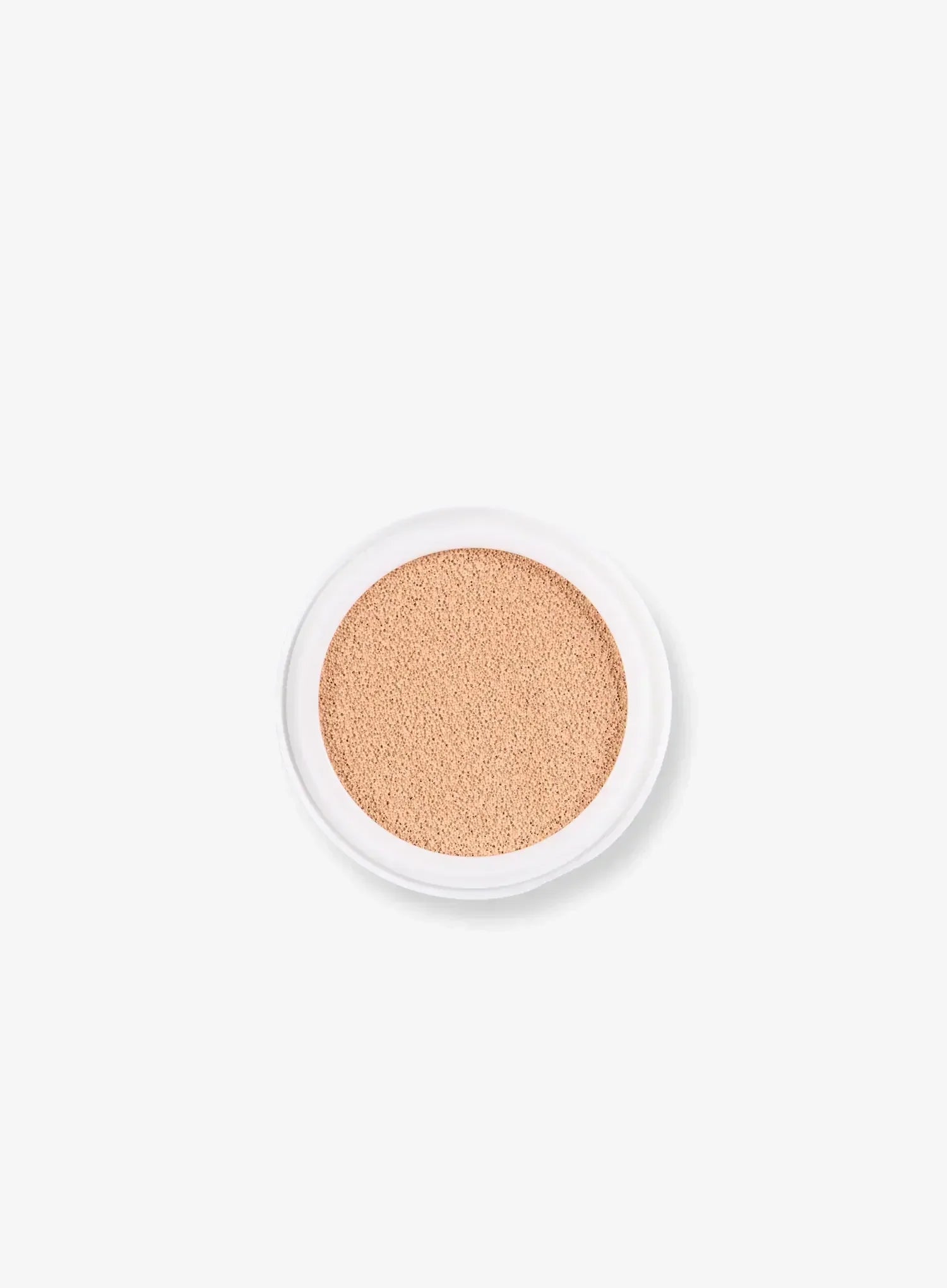 Semi-matte vegan cushion foundation provides breathable, porcelain-like coverage.